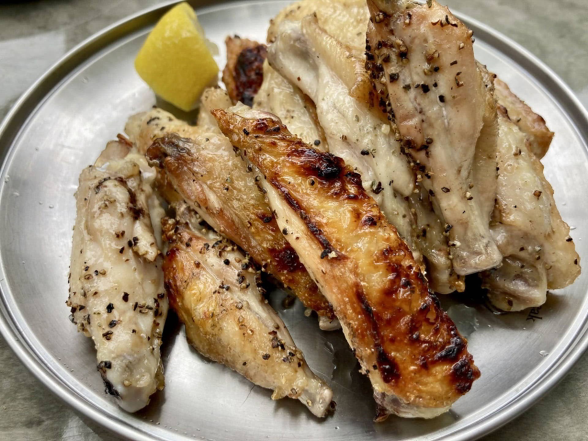 手羽中を使用し、ジューシーで肉厚の食感を楽しむことができます。しょうがのピリッとした刺激と、バターのまろやかな味わいが絶妙に絡み合い、シンプルながらも深い味わいを生み出します。トマトの酸味とレモンの爽やかさが加わることで、味にさらに奥行きが出て、食欲をそそります。
