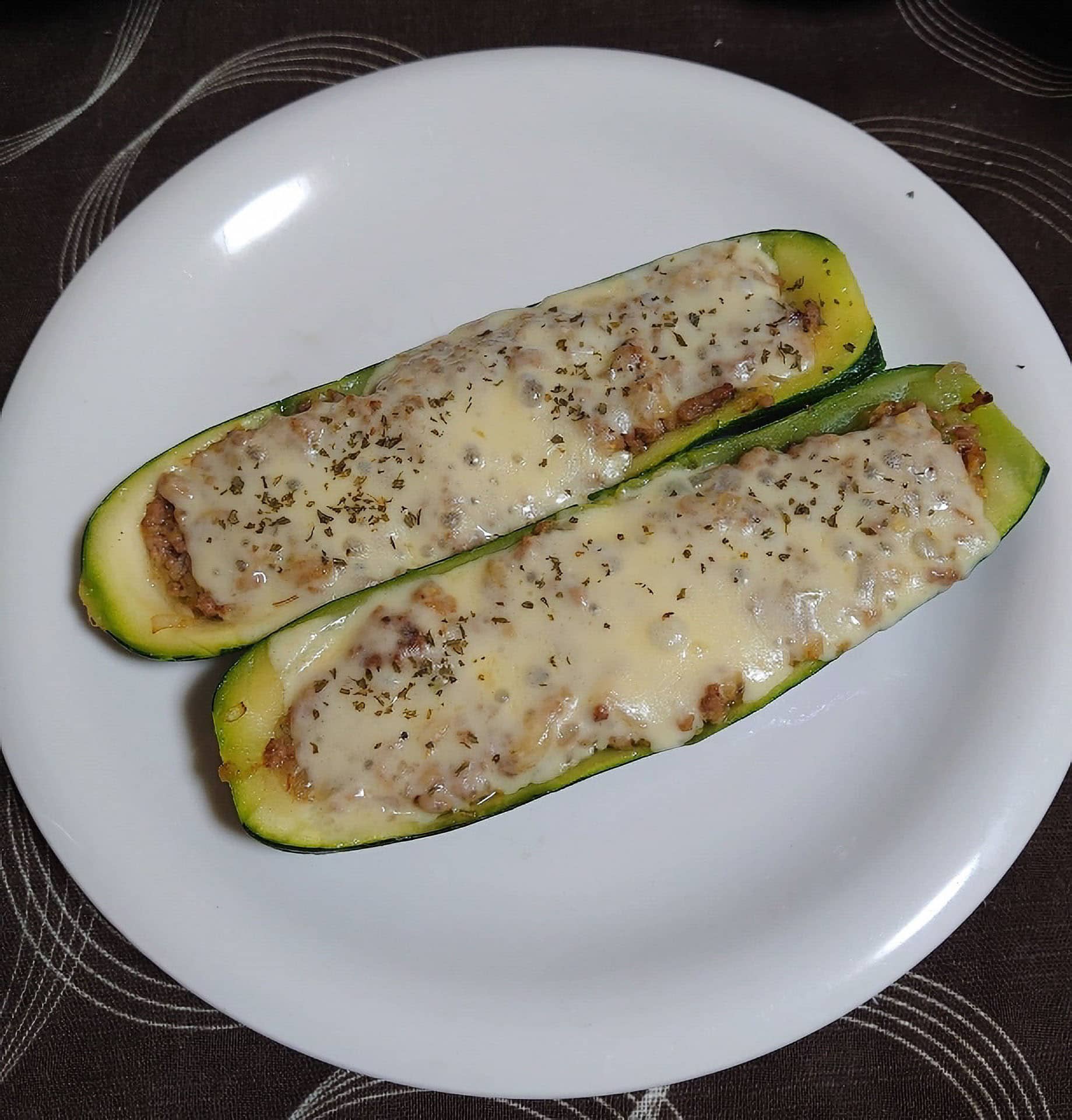 - 詰めたズッキーニに残りのパン粉とバージンオリーブ油をふり、200度のオーブンで20分焼く