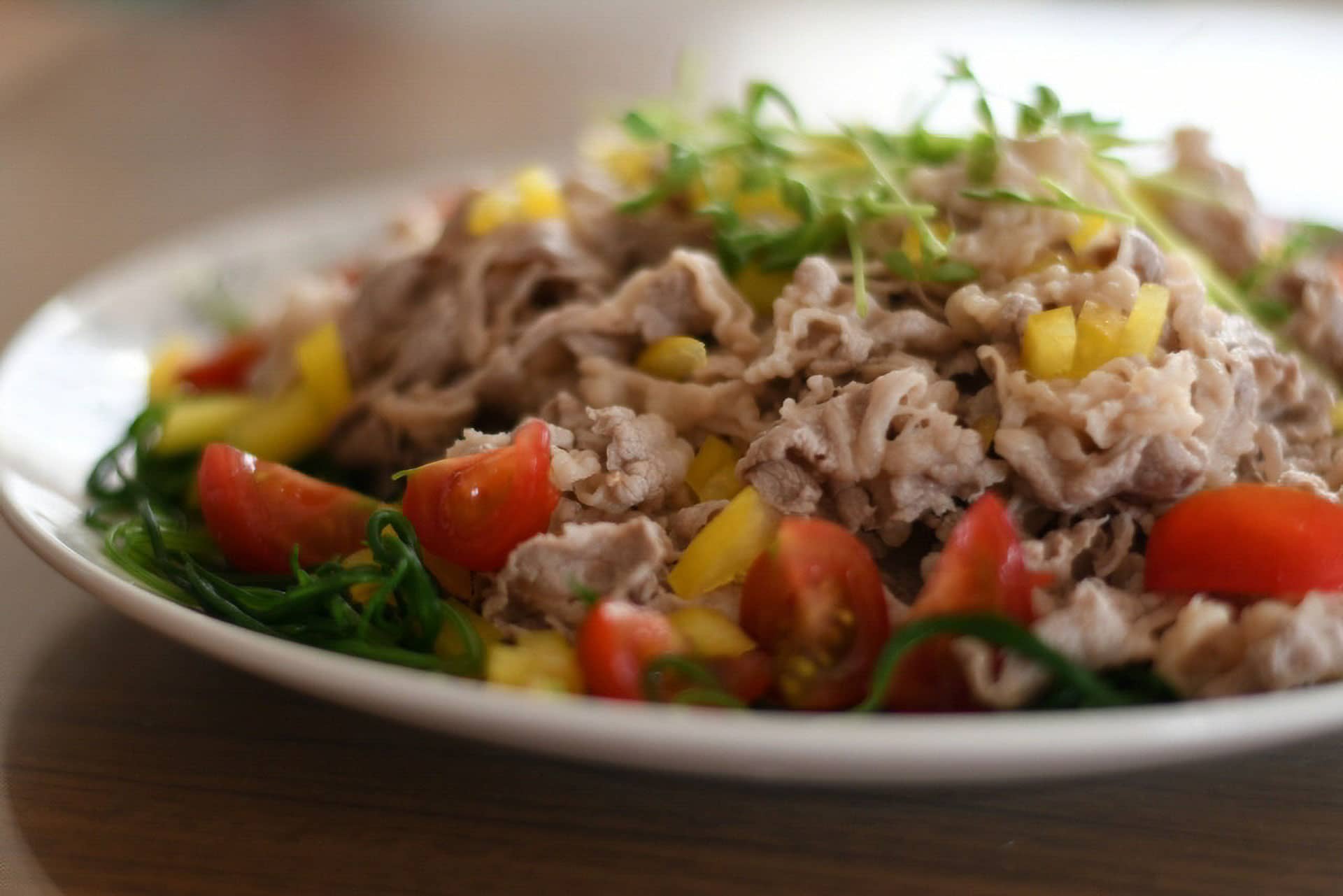 彩り豊かな野菜と豚肩ロース肉がバランスよく組み合わさった一品です。栄養価が高く、見た目も華やかで、食卓を彩るのにぴったりです。アンチョビーとレモン汁が効いたソースがアクセントとなり、野菜の甘みを引き立てます。