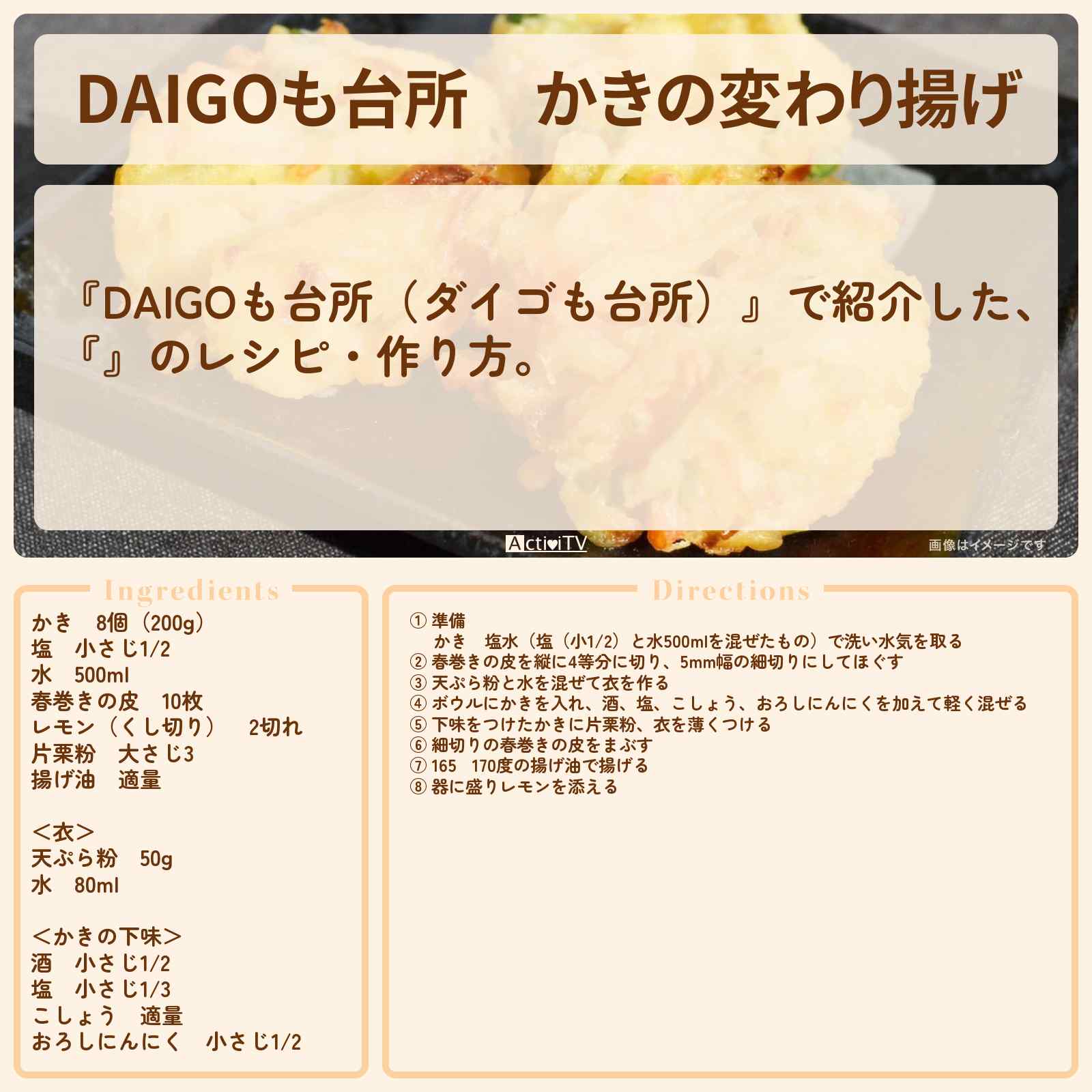 放送の【DAIGOも台所(ダイゴも台所)】で紹介した、『』のレシピ・作り方。