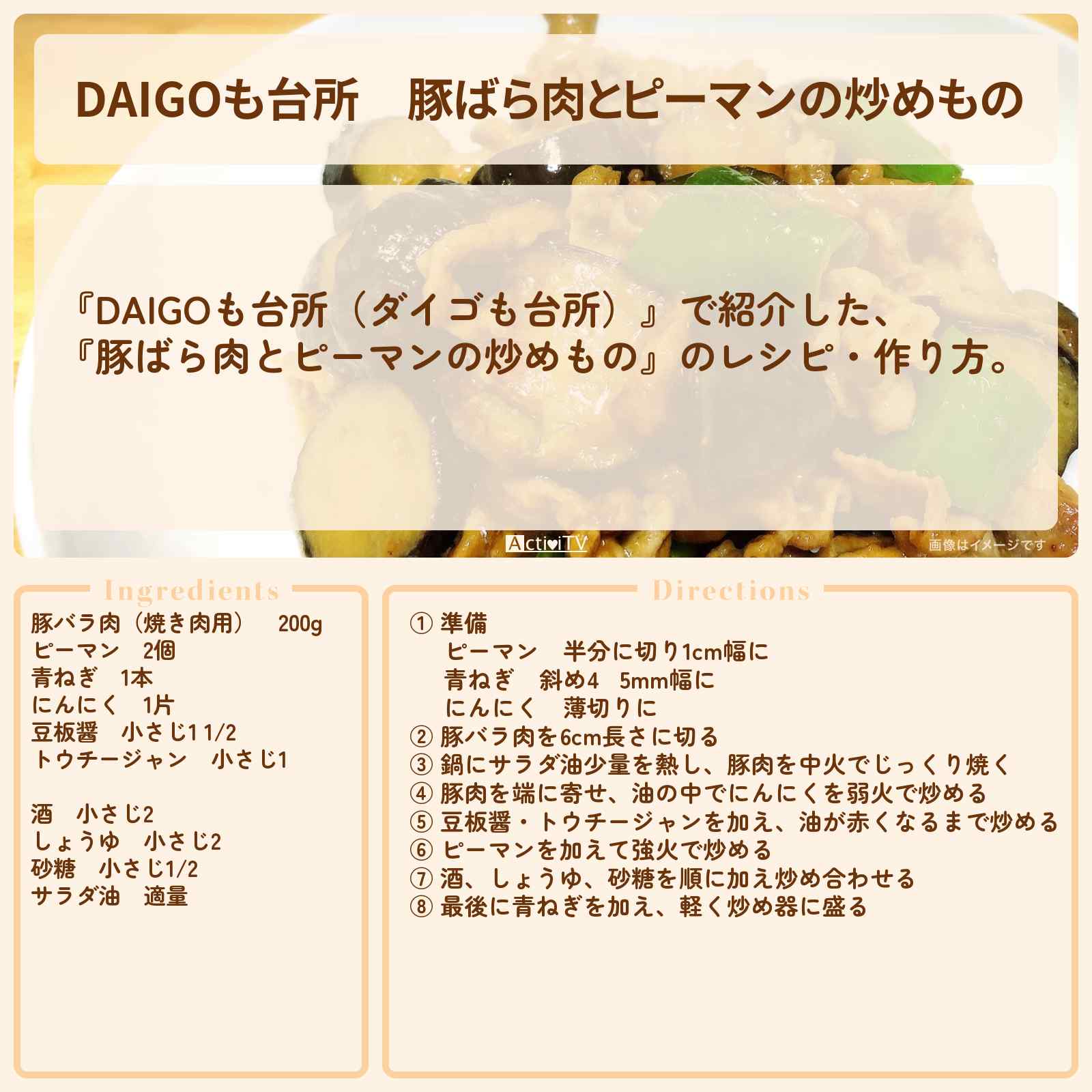 放送の【DAIGOも台所(ダイゴも台所)】で紹介した、『豚ばら肉とピーマンの炒めもの』のレシピ・作り方。
