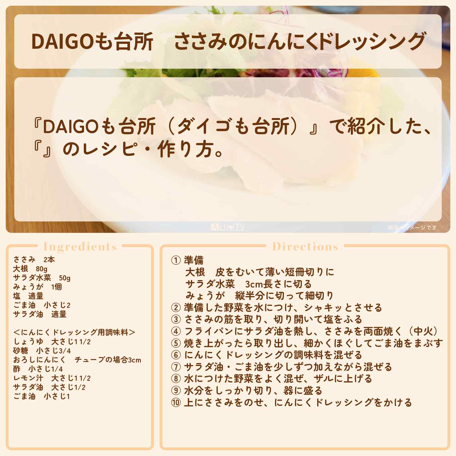 放送の【DAIGOも台所(ダイゴも台所)】で紹介した、『』のレシピ・作り方。