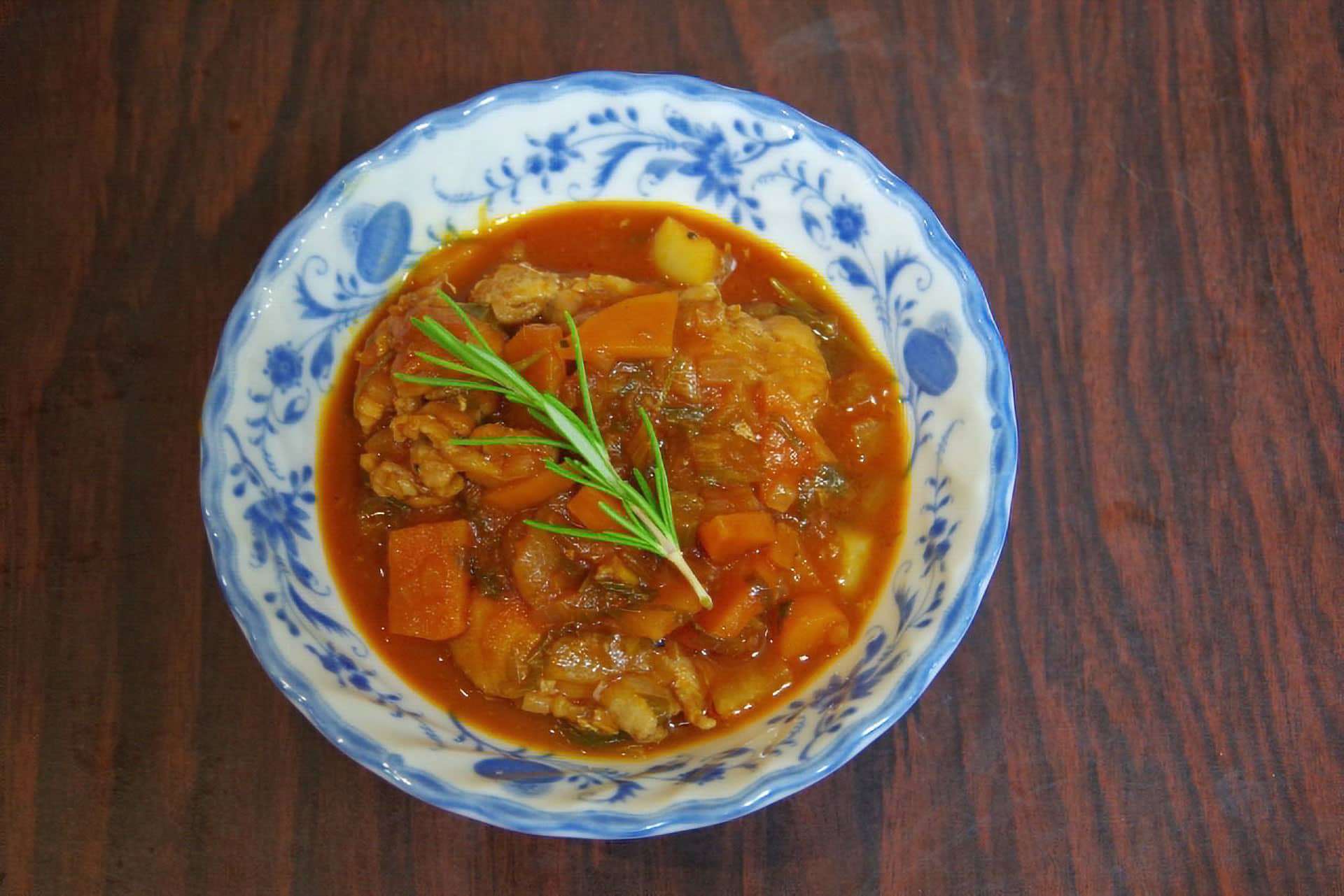 しょうがの辛みと香りを主役に、にんにくとパプリカのコクを重ねたピリうまスープ。玉ねぎの甘みとマッシュルームのうま味、ベーコンの塩気が合わさり、ひと口ごとに深みが広がる。角切りバゲットを一緒に煮ることでとろみと満足感が生まれ、食べるスープのような仕上がりに。