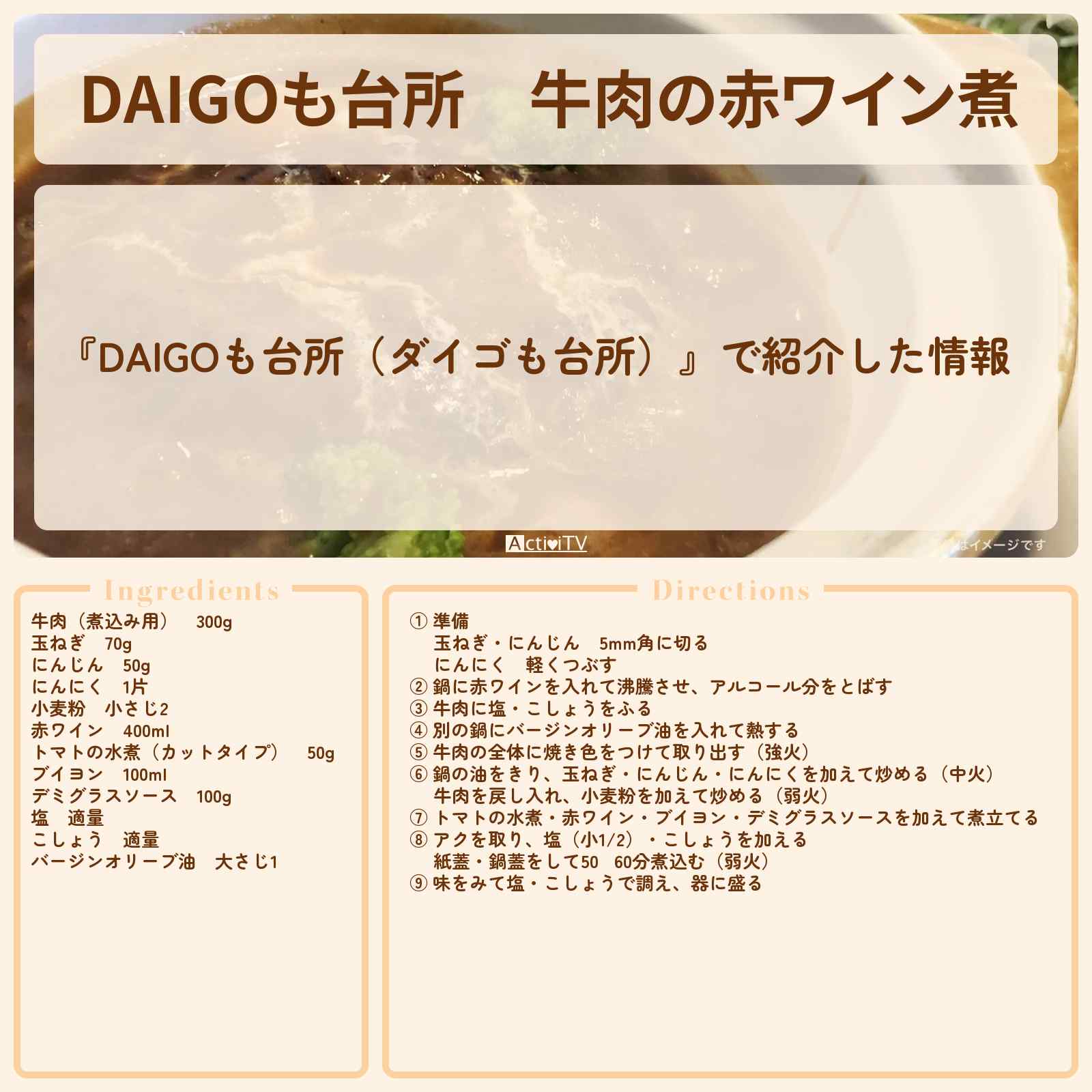 放送の【DAIGOも台所(ダイゴも台所)】で紹介した情報