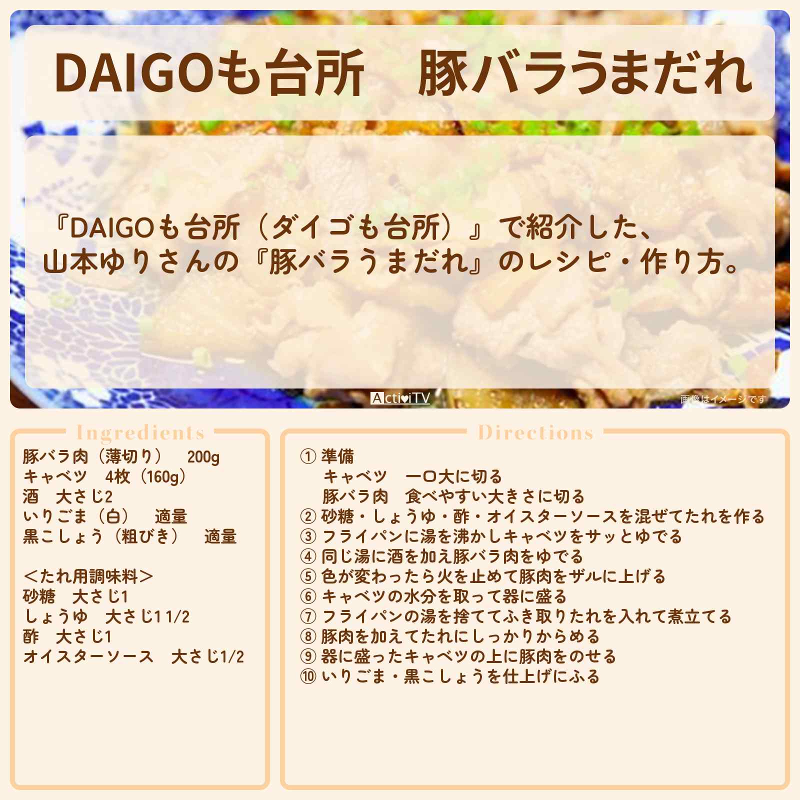 放送の【DAIGOも台所(ダイゴも台所)】で紹介した、山本ゆりさんの『豚バラうまだれ』のレシピ・作り方。
