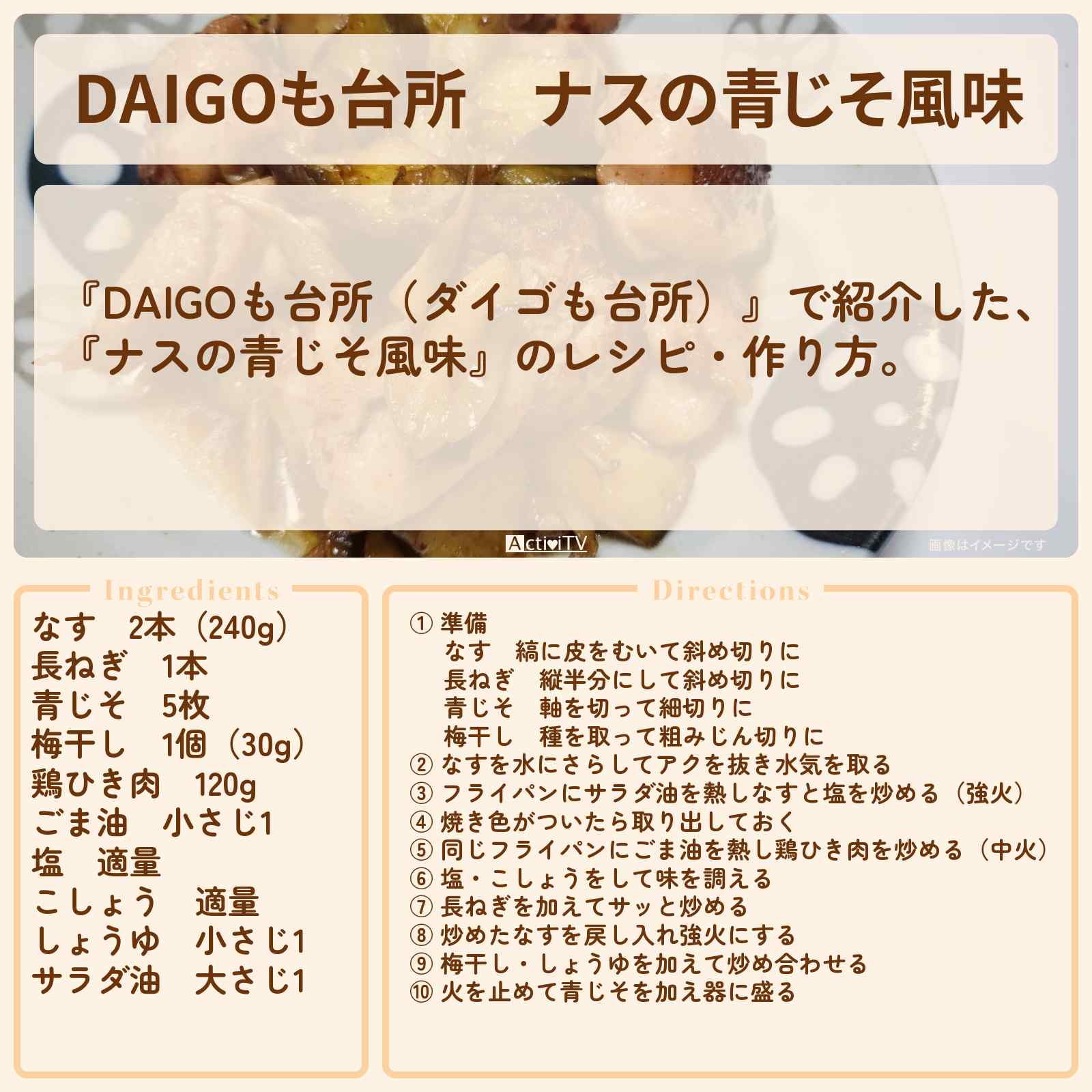 放送の【DAIGOも台所(ダイゴも台所)】で紹介した、『ナスの青じそ風味』のレシピ・作り方。