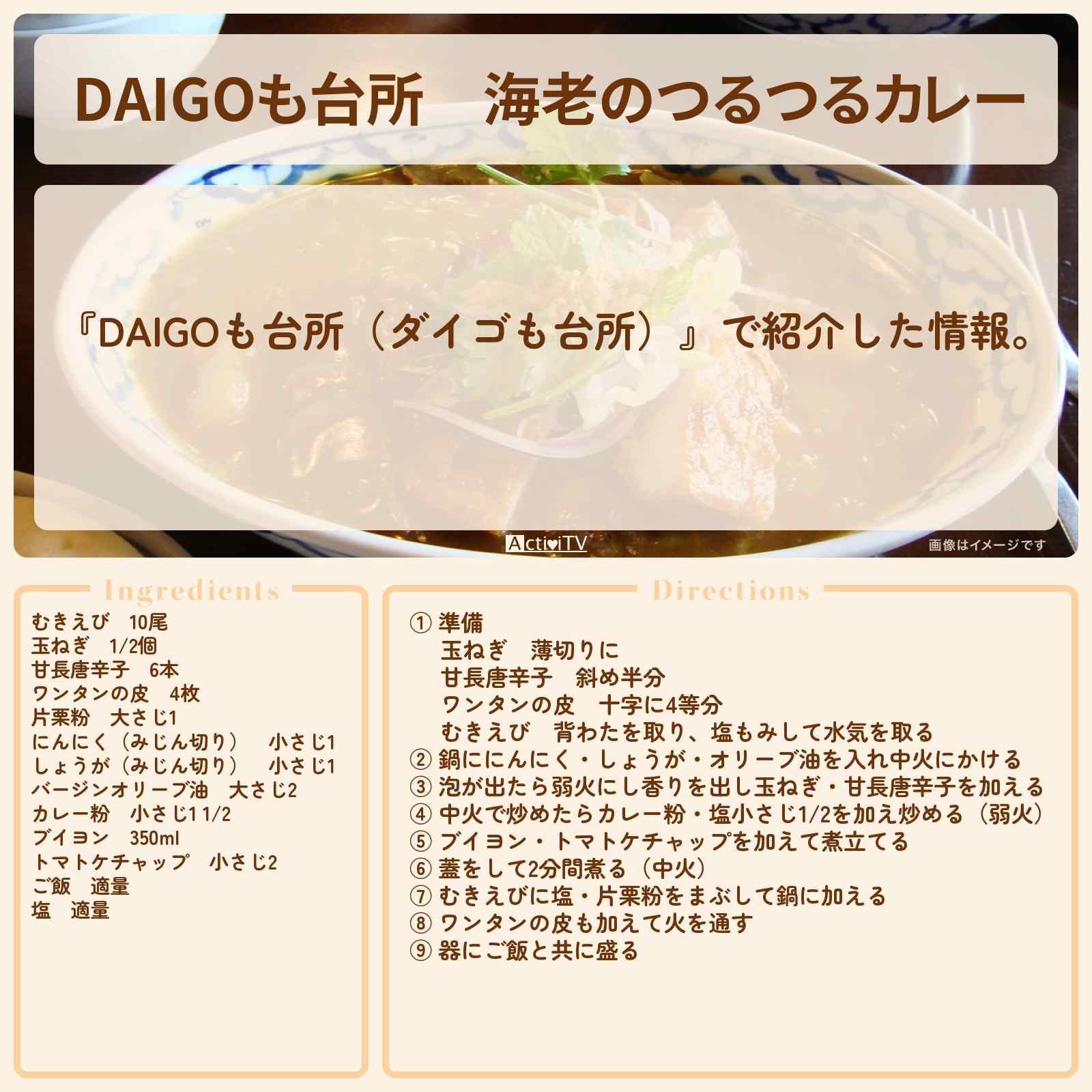 放送の【DAIGOも台所(ダイゴも台所)】で紹介した情報。