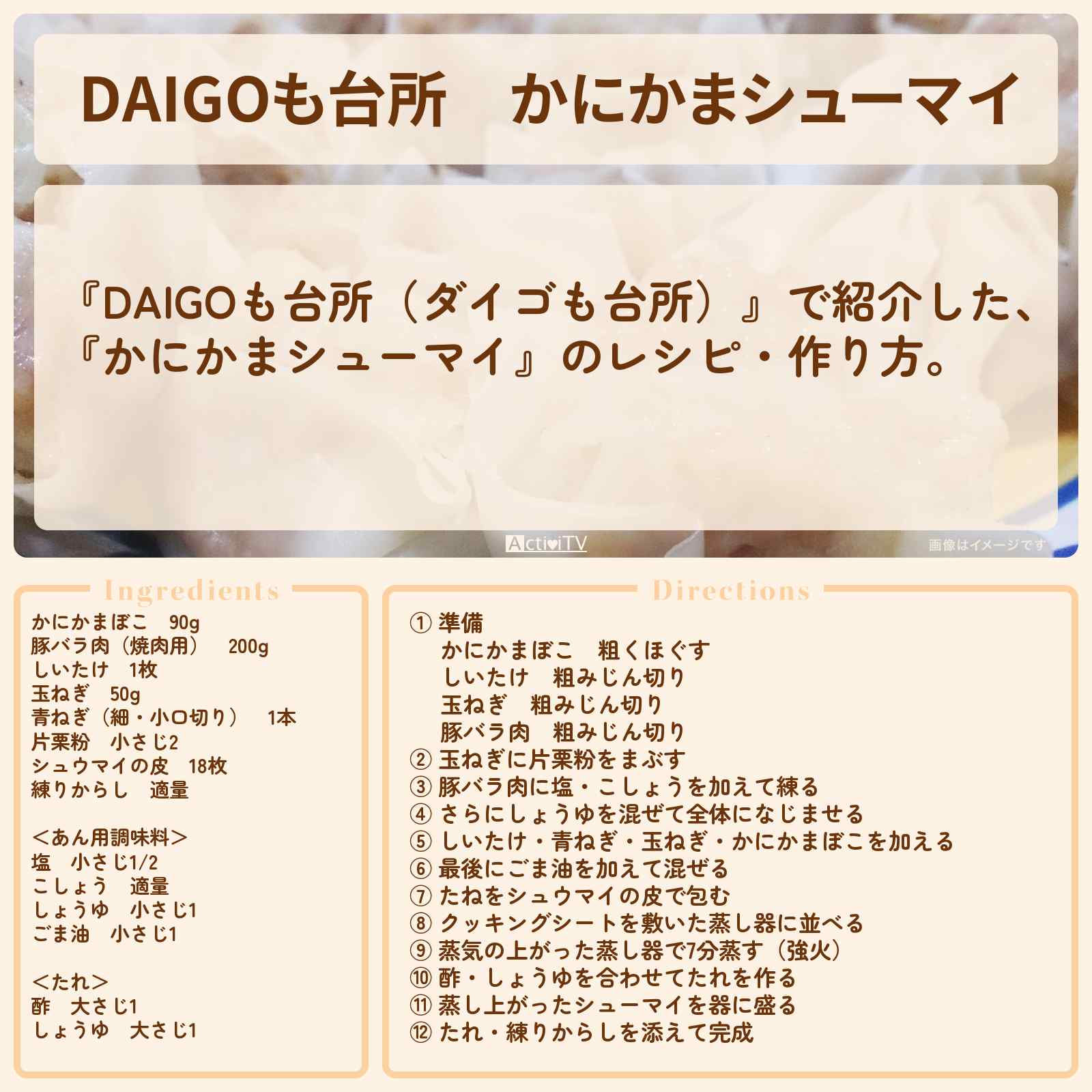 放送の【DAIGOも台所(ダイゴも台所)】で紹介した、『かにかまシューマイ』のレシピ・作り方。