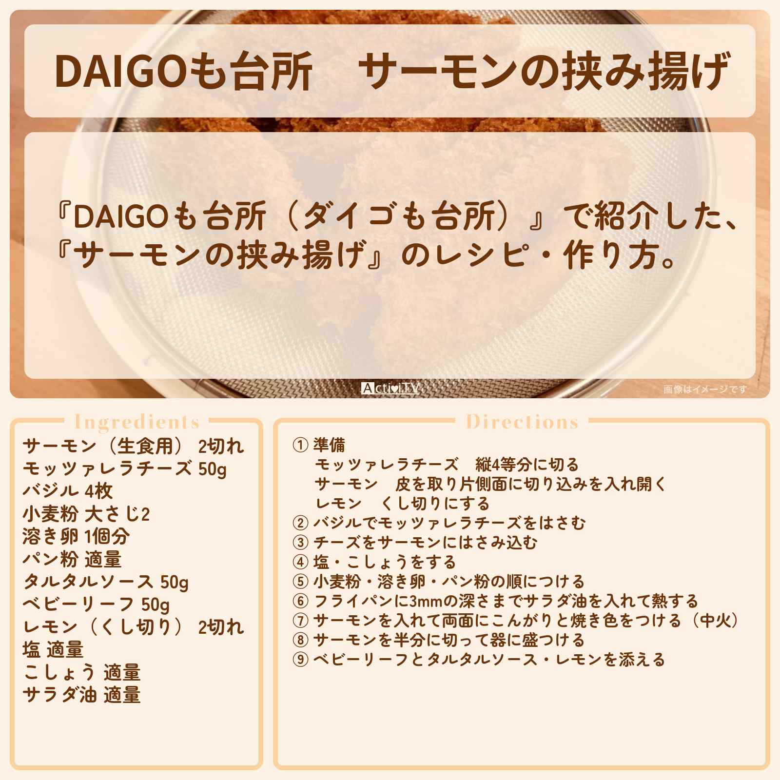 放送の【DAIGOも台所(ダイゴも台所)】で紹介した、『サーモンの挟み揚げ』のレシピ・作り方。