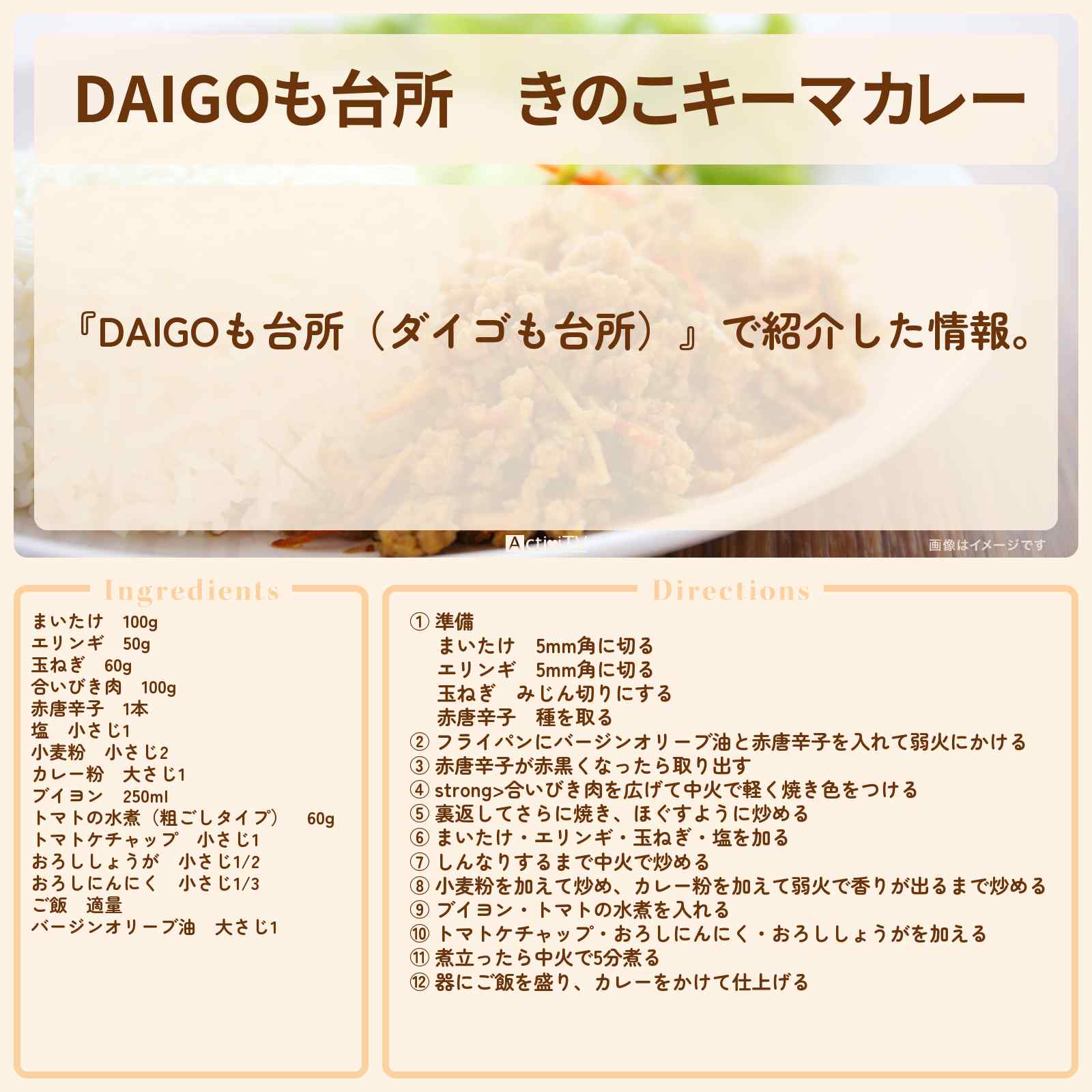 放送の【DAIGOも台所(ダイゴも台所)】で紹介した情報。