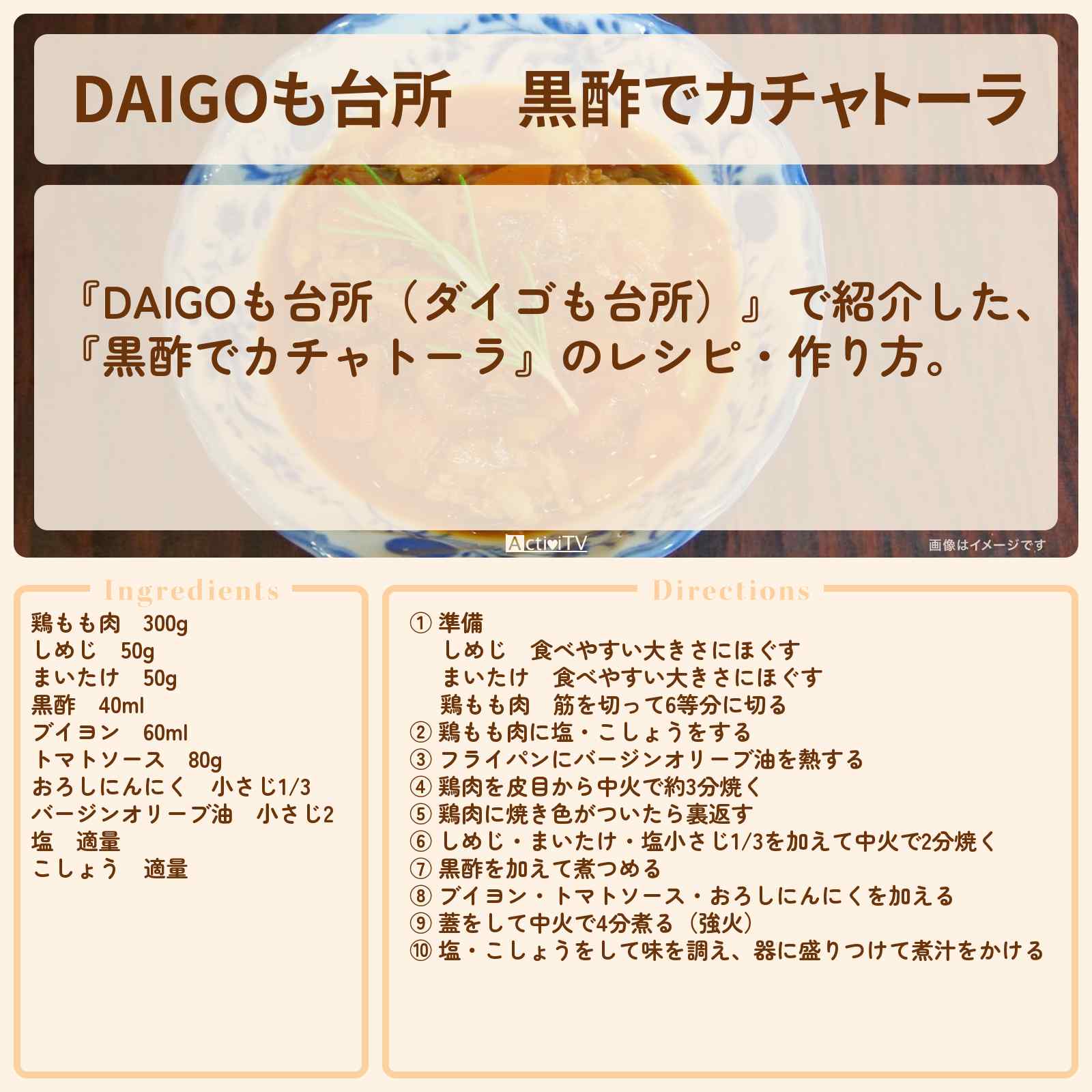 放送の【DAIGOも台所(ダイゴも台所)】で紹介した、『黒酢でカチャトーラ』のレシピ・作り方。