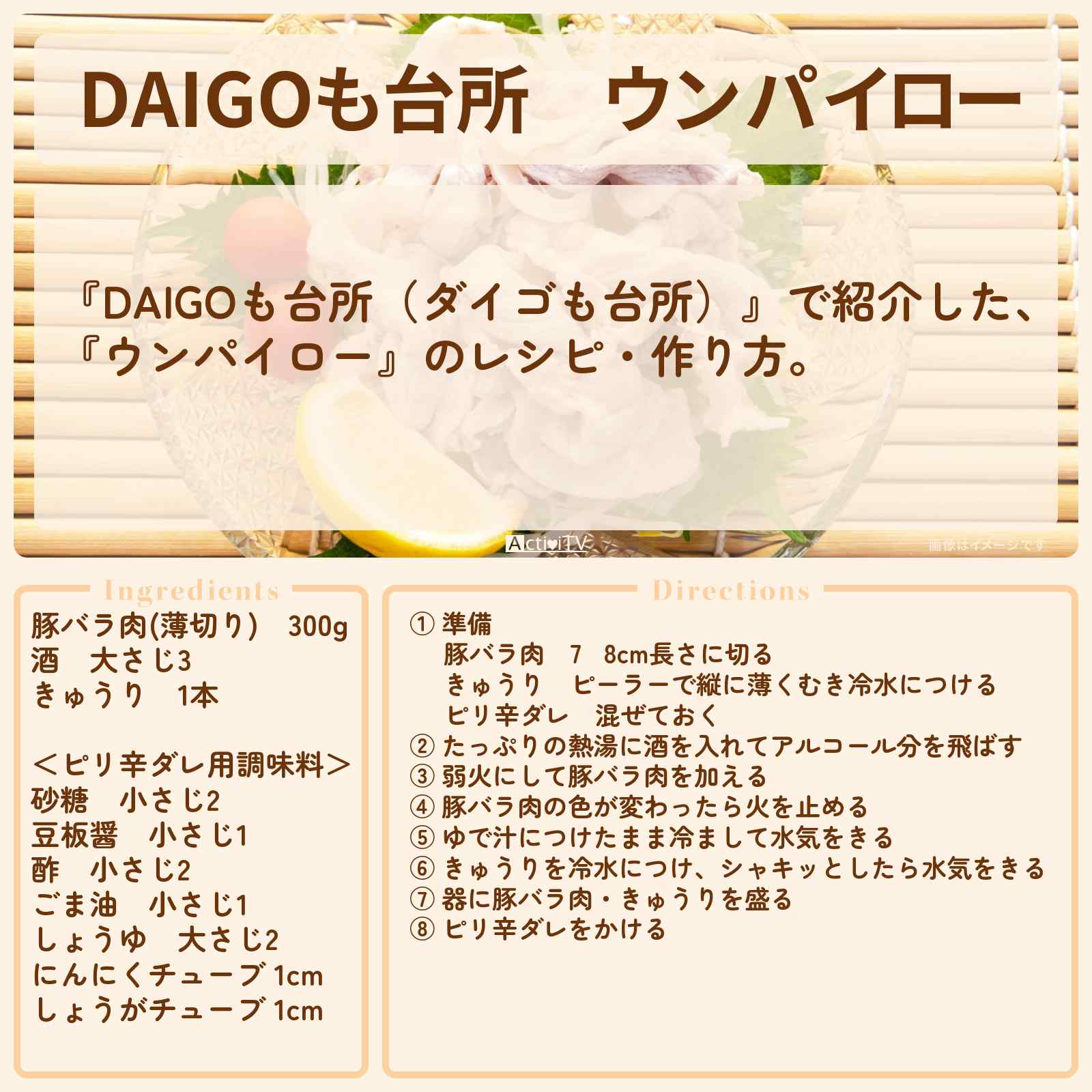 放送の【DAIGOも台所(ダイゴも台所)】で紹介した、『ウンパイロー』のレシピ・作り方。