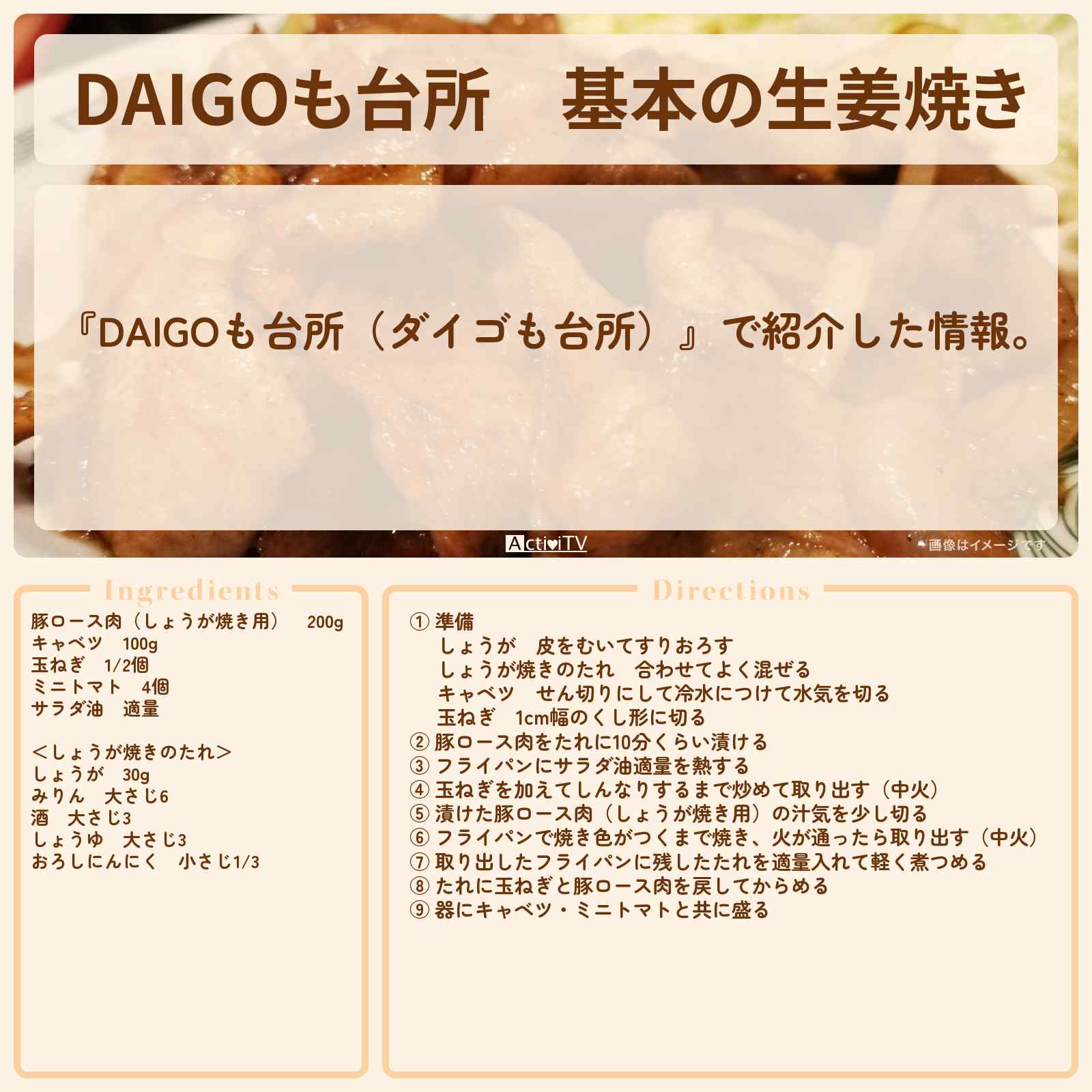 放送の【DAIGOも台所(ダイゴも台所)】で紹介した情報。