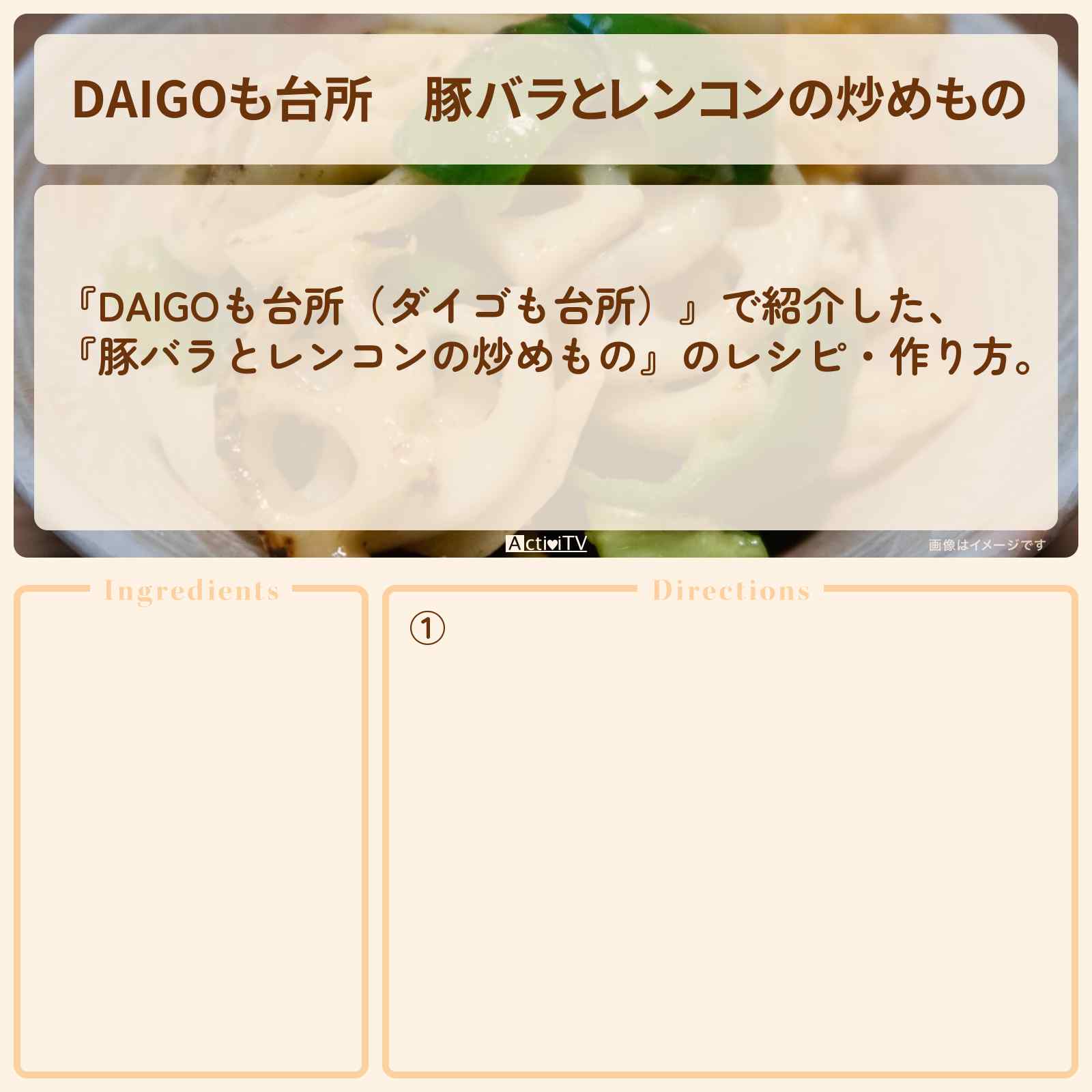 放送の【DAIGOも台所(ダイゴも台所)】で紹介した、『豚バラとレンコンの炒めもの』のレシピ・作り方。