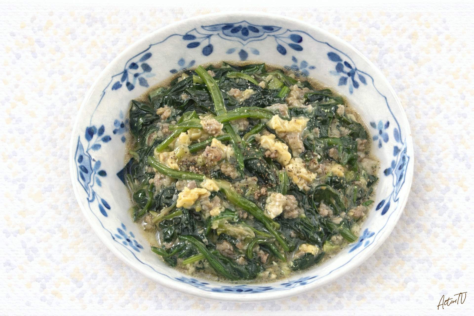 2025年12月24日放送の【DAIGOも台所(ダイゴも台所)】で紹介した、『ほうれん草のそぼろ卵あん』のレシピ・作り方。