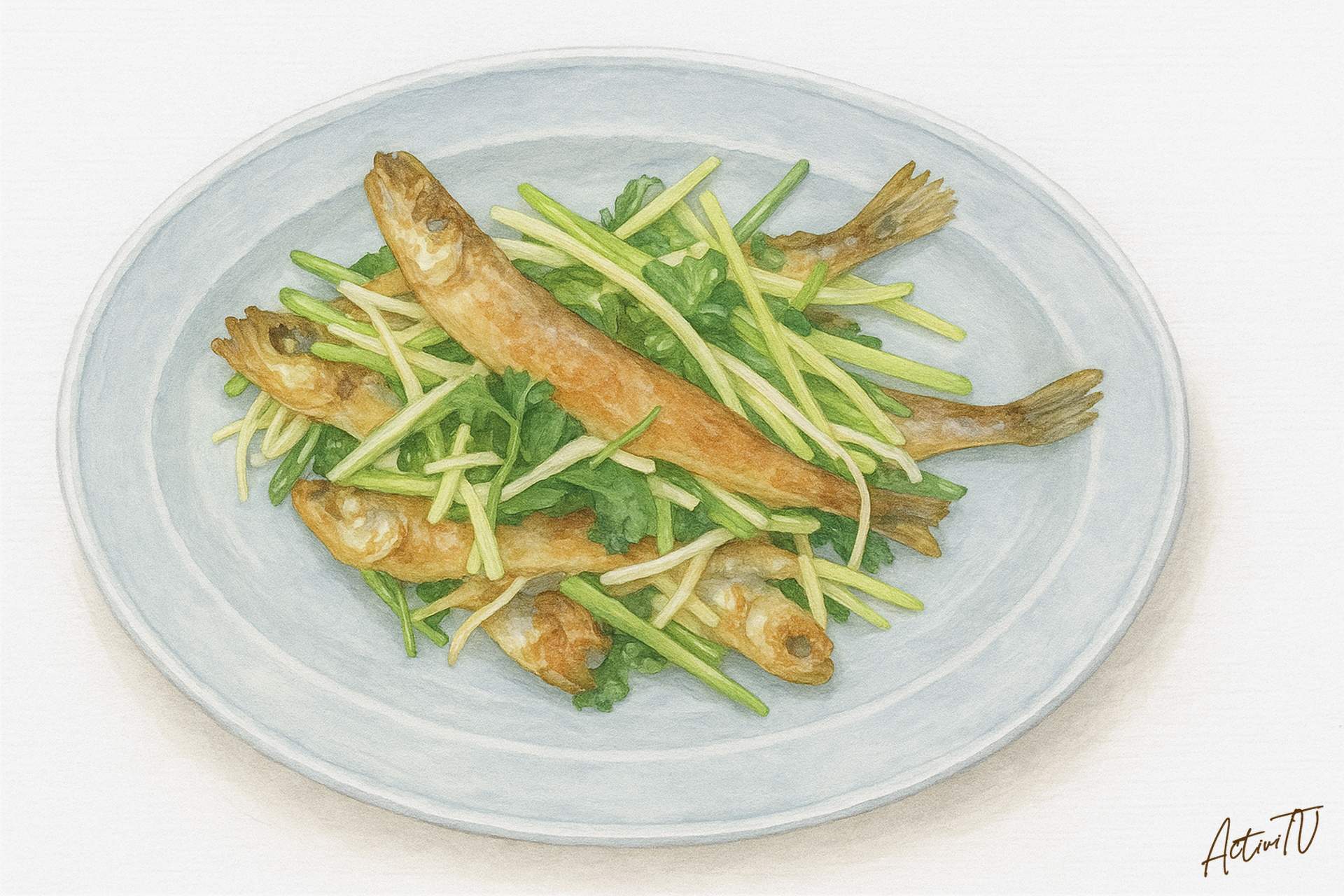 ししゃもの強火炒めは、こんがり焼いたししゃもに、パクチーと長ねぎ・しょうが・にんにくの香味野菜をたっぷり合わせた、香り高いおかずです。片栗粉をまぶしてから強火で焼くことで、表面はカリッと、中はふっくらと仕上がります。