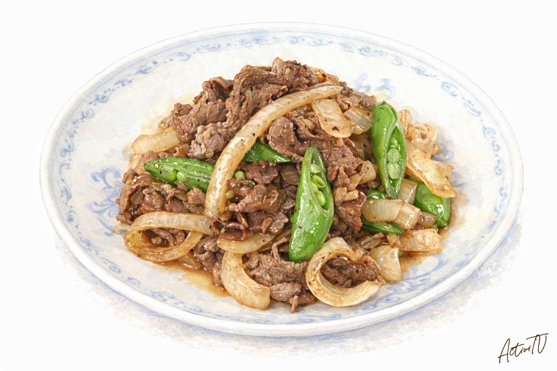 牛肉と新玉ねぎの黒こしょう炒め