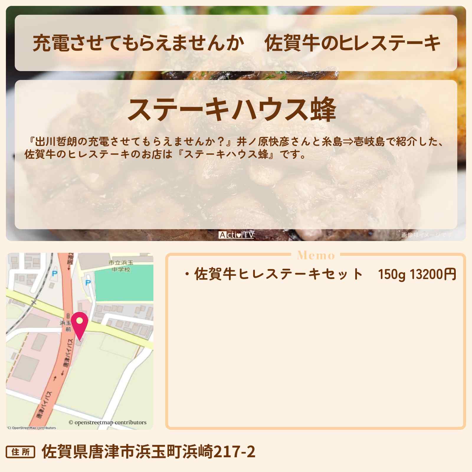 佐賀牛のヒレステーキ 浜崎駅「ステーキハウス蜂」