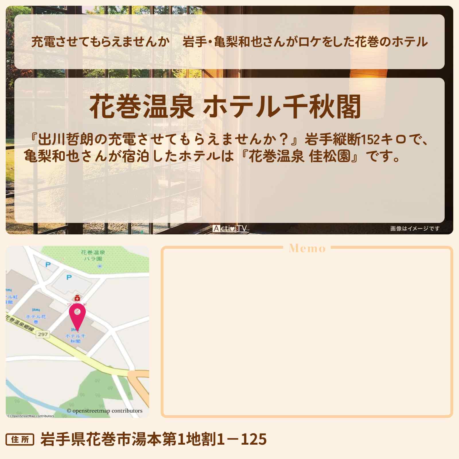 亀梨和也さんがロケ「花巻温泉 ホテル千秋閣」