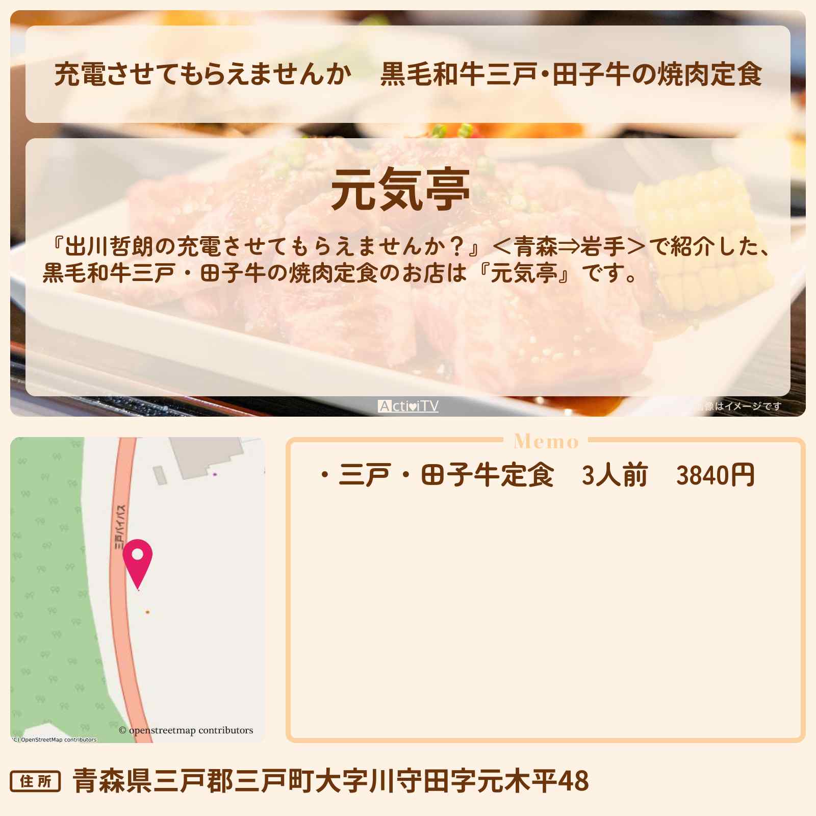 三戸田子牛定食 三戸駅「元気亭」