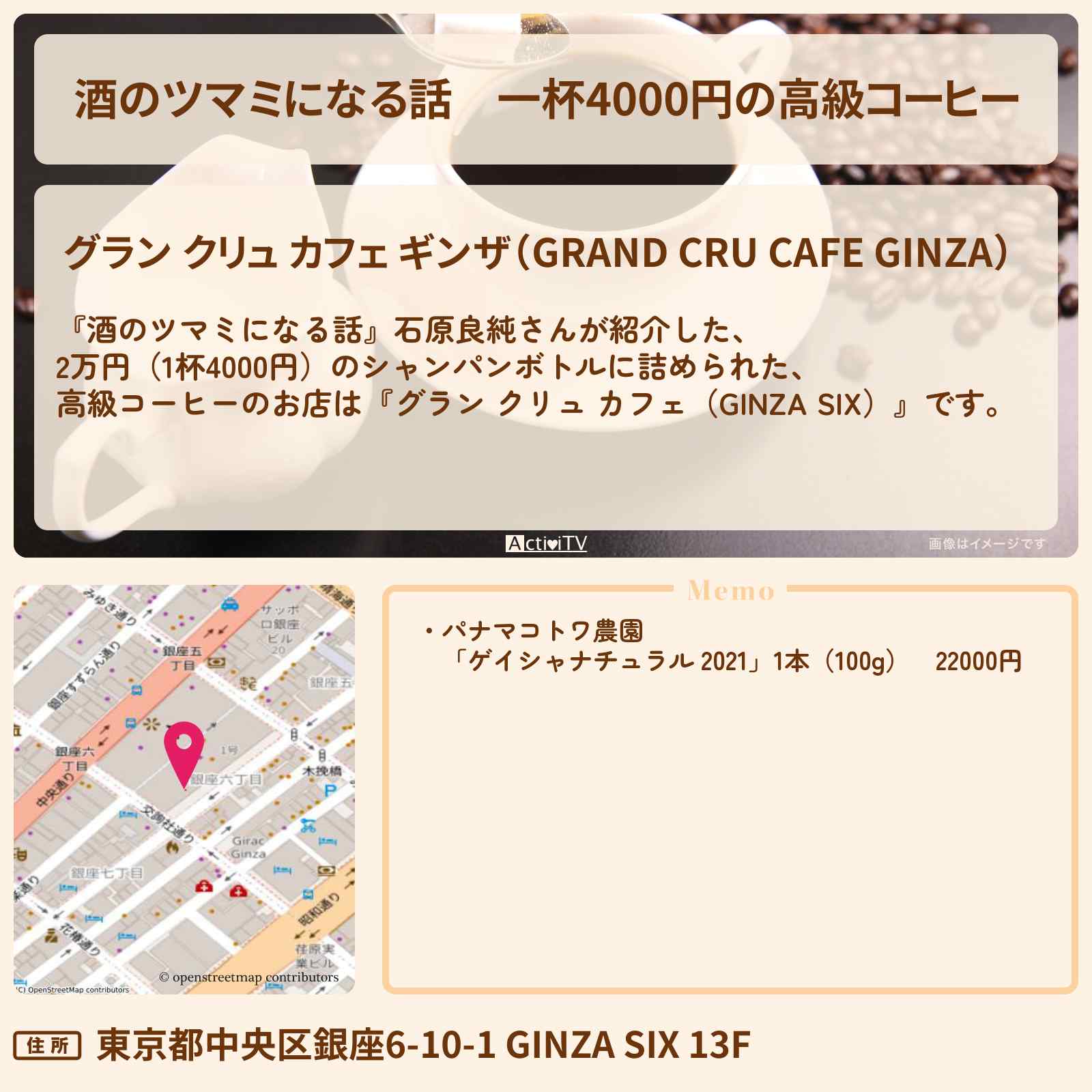 一杯4000円のコーヒー 東銀座駅「グラン クリュ カフェ ギンザ(GRAND CRU CAFE GINZA)」