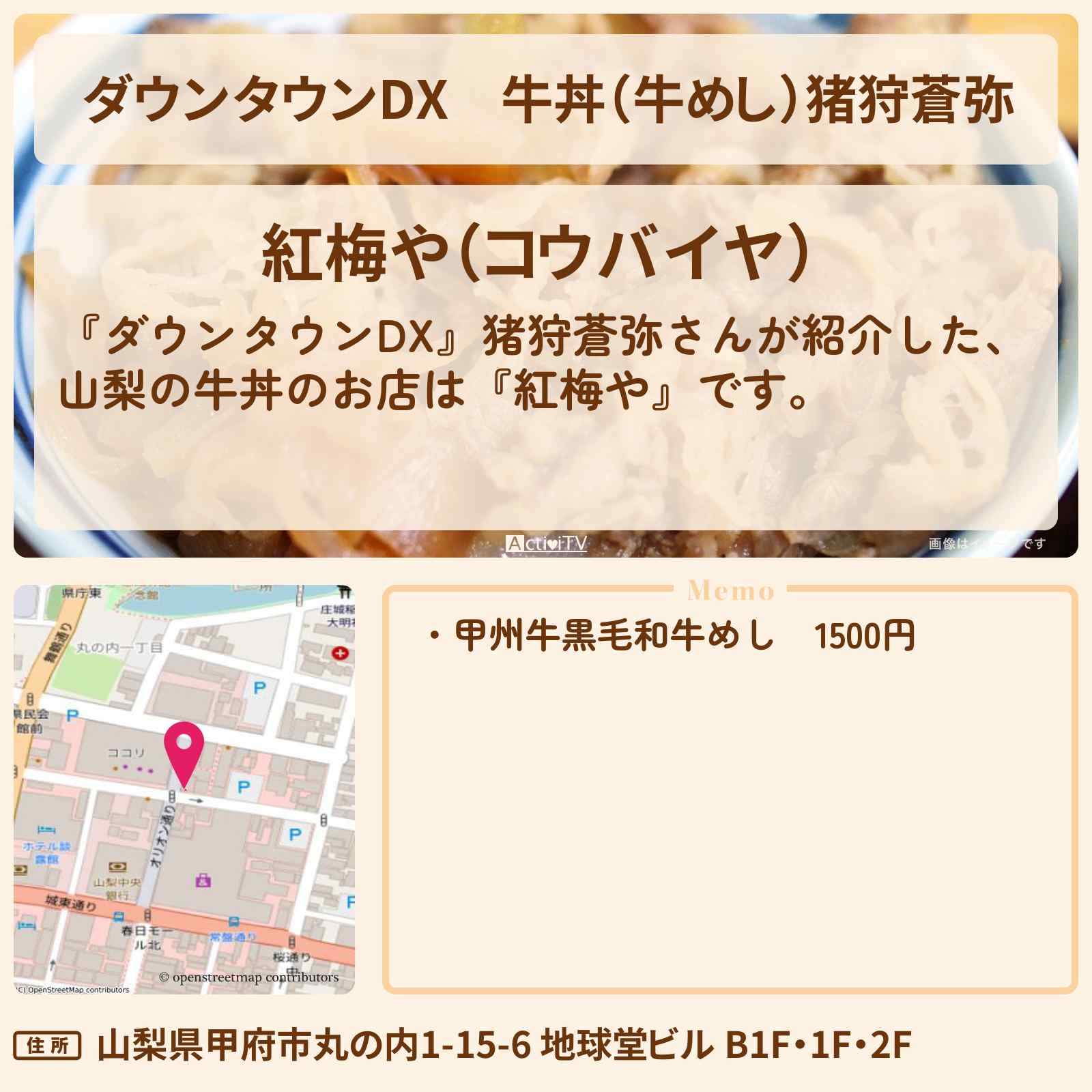牛丼(牛めし) 甲府駅「紅梅や(コウバイヤ)」