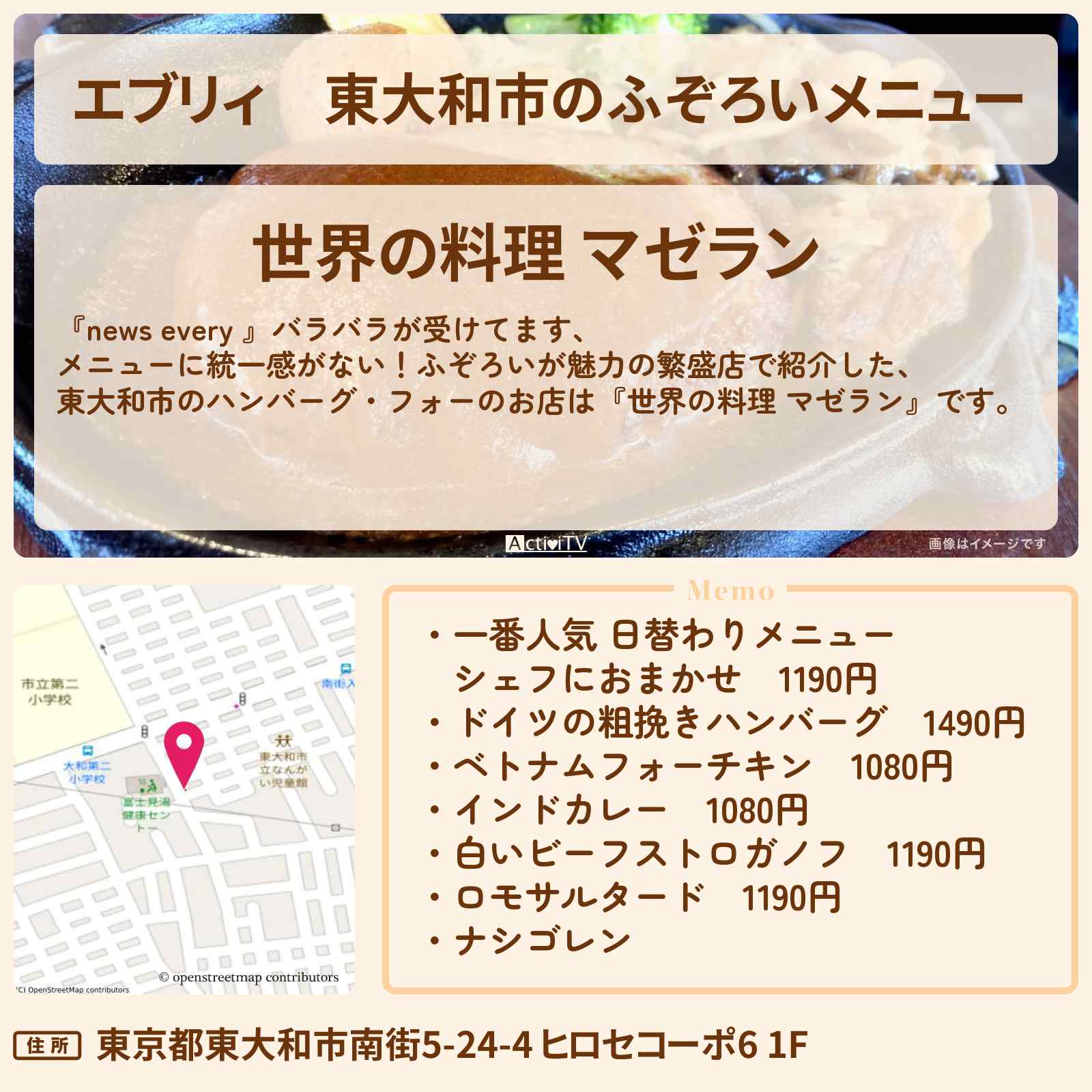 東大和市駅「世界の料理 マゼラン」