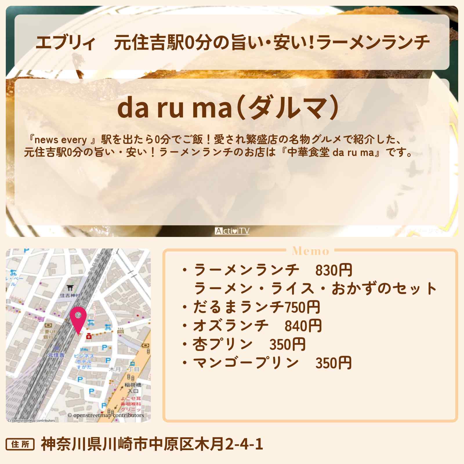 ラーメンランチ 元住吉駅「da ru ma(ダルマ)」