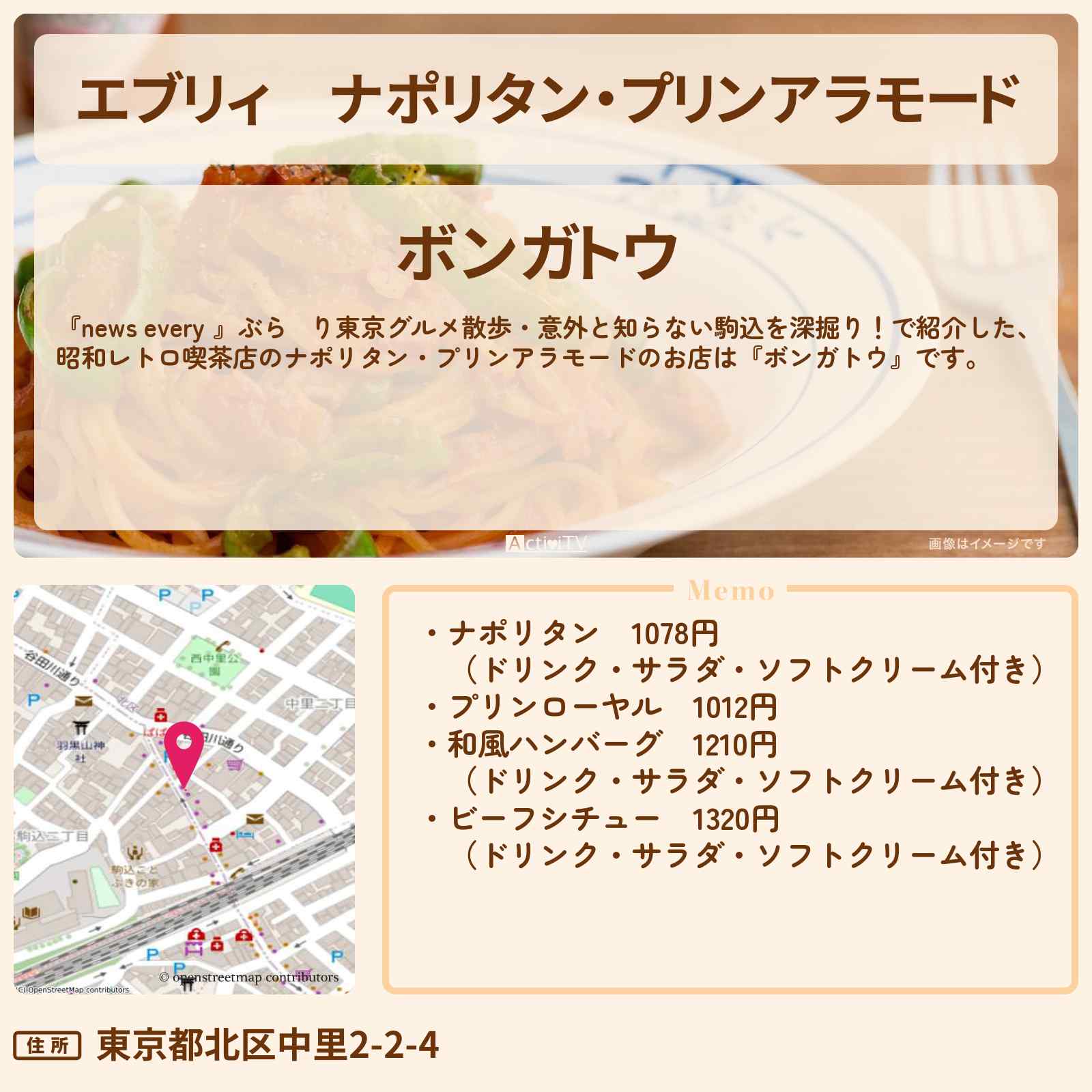 【エブリィ】ナポリタン・プリンアラモード 駒込の喫茶店『ボンガトウ』のお店情報 #every