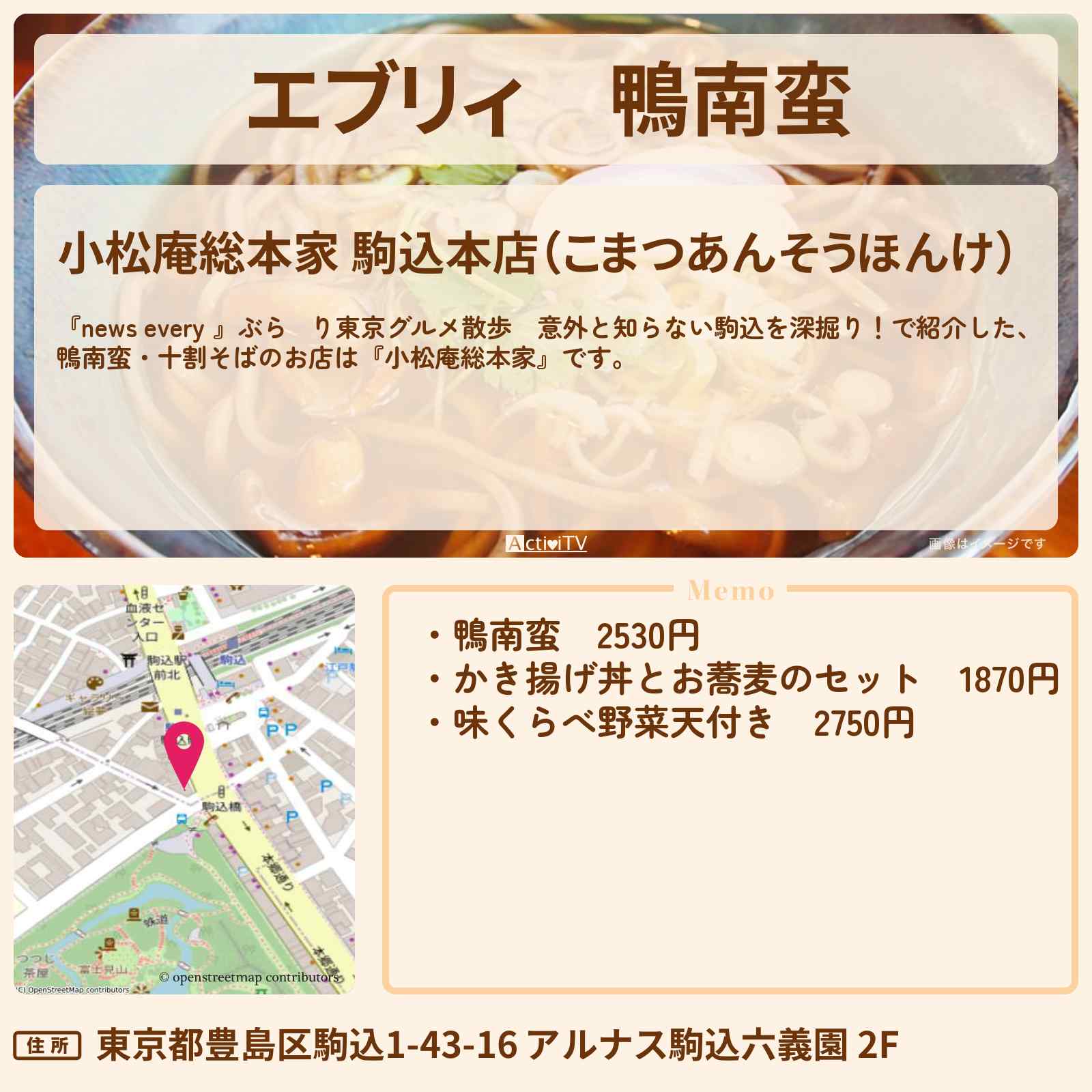 鴨南蛮 駒込駅「小松庵総本家 駒込本店(こまつあんそうほんけ)」