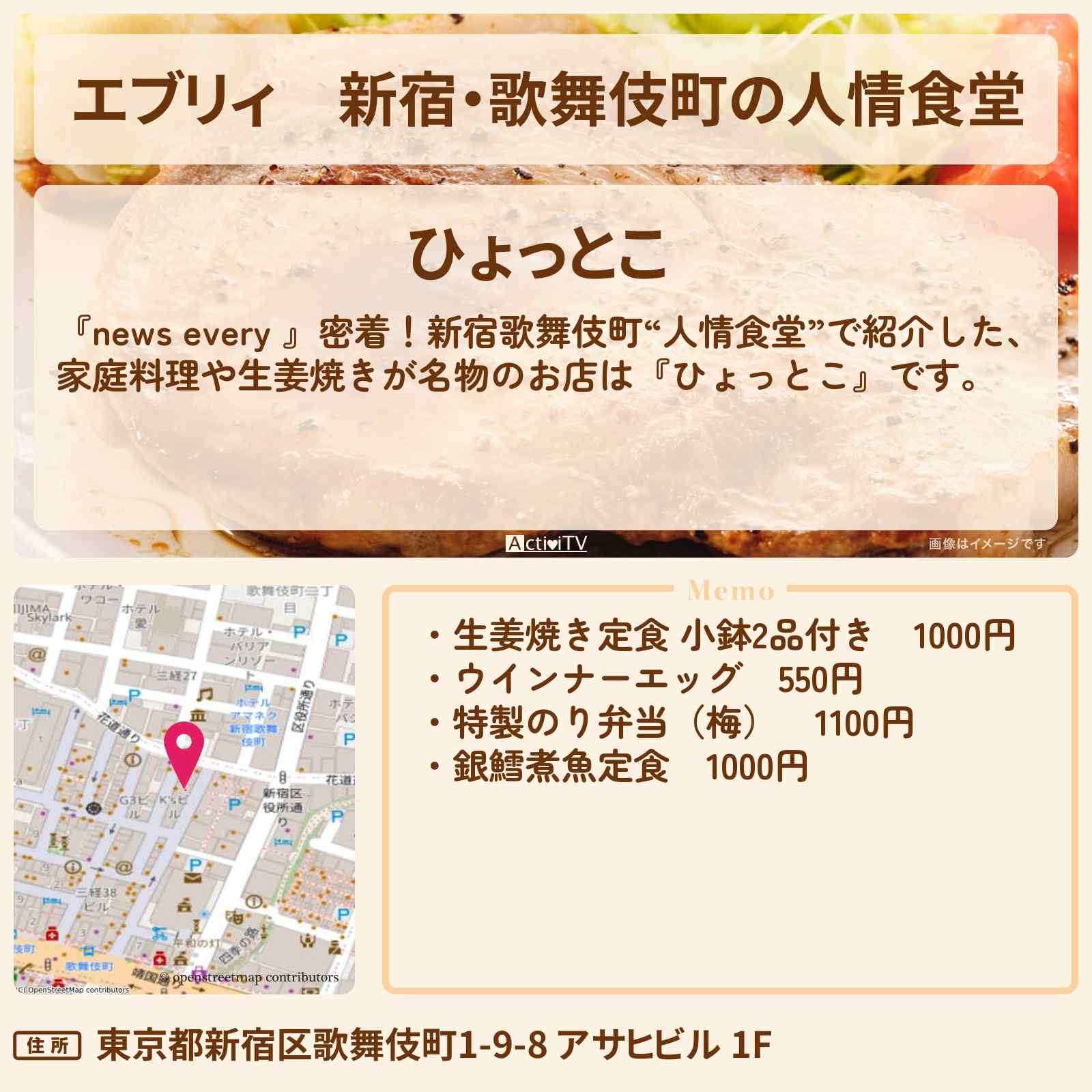 【エブリィ】新宿・歌舞伎町の人情食堂 生姜焼き『ひょっとこ』のお店情報 #every