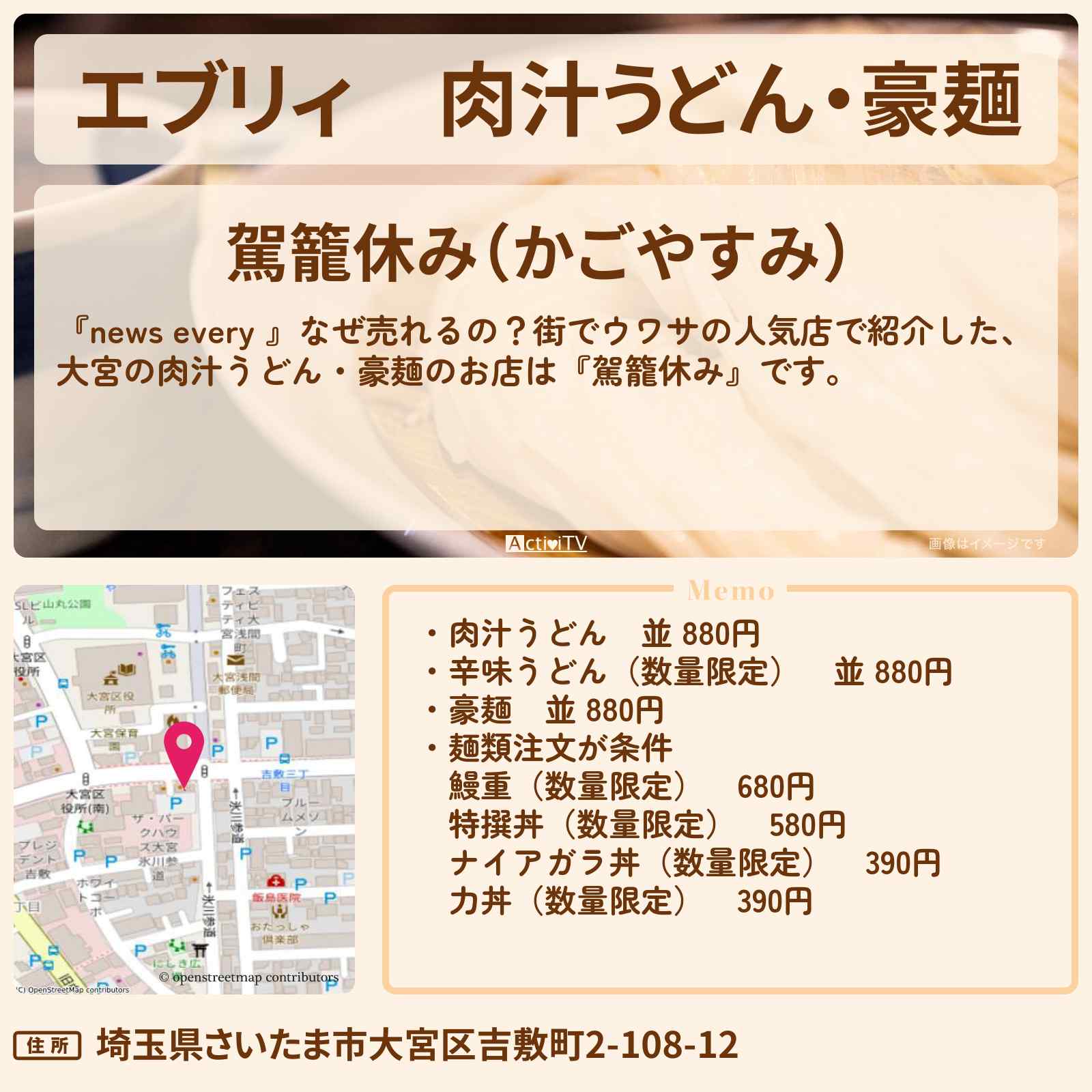 肉汁うどん・豪麺 さいたま新都心駅「駕籠休み(かごやすみ)」