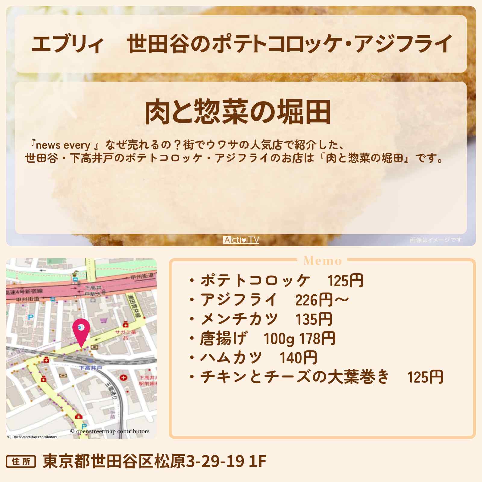 ポテトコロッケ・アジフライ 下高井戸駅「肉と惣菜の堀田」