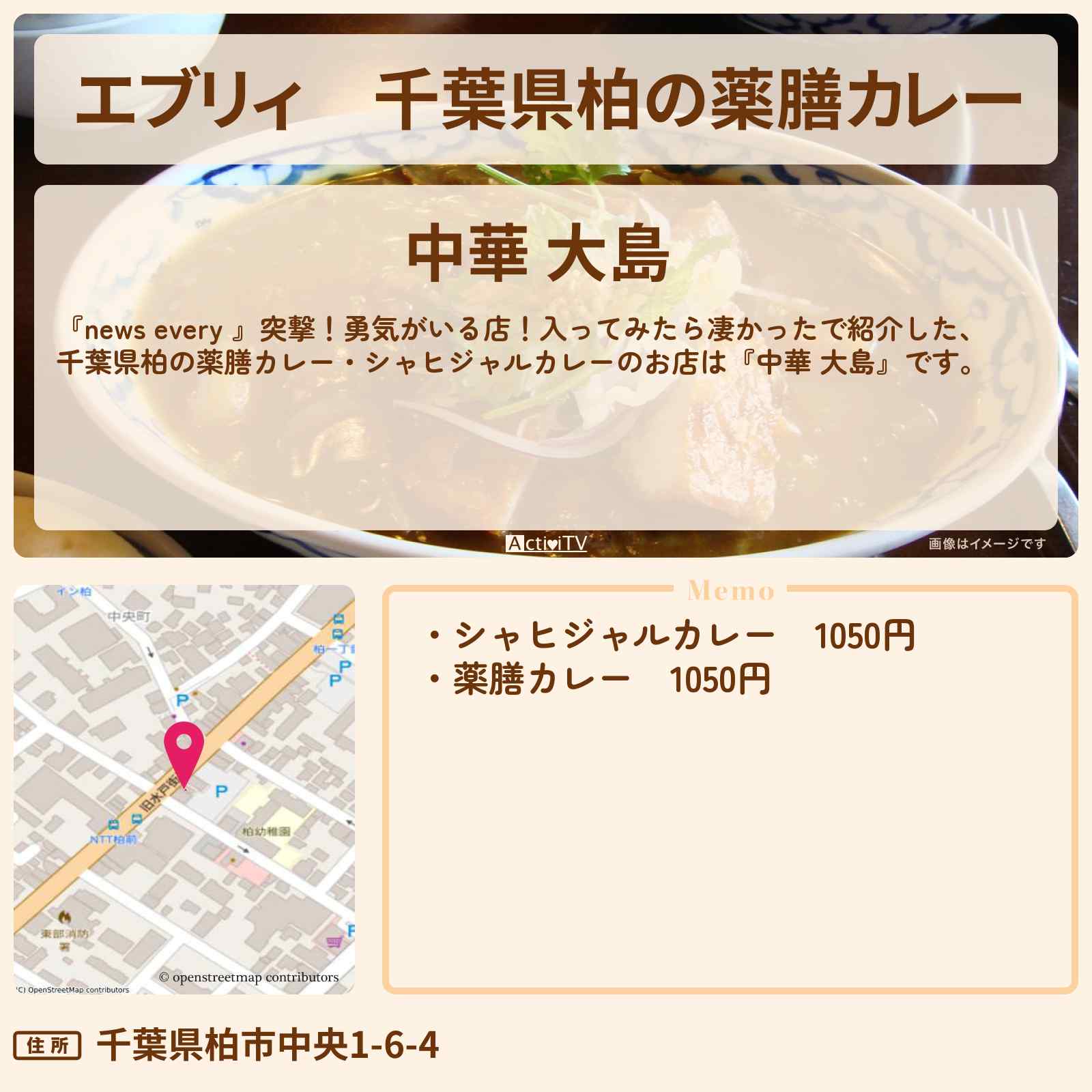 千葉県柏の薬膳カレー 柏駅「中華 大島」