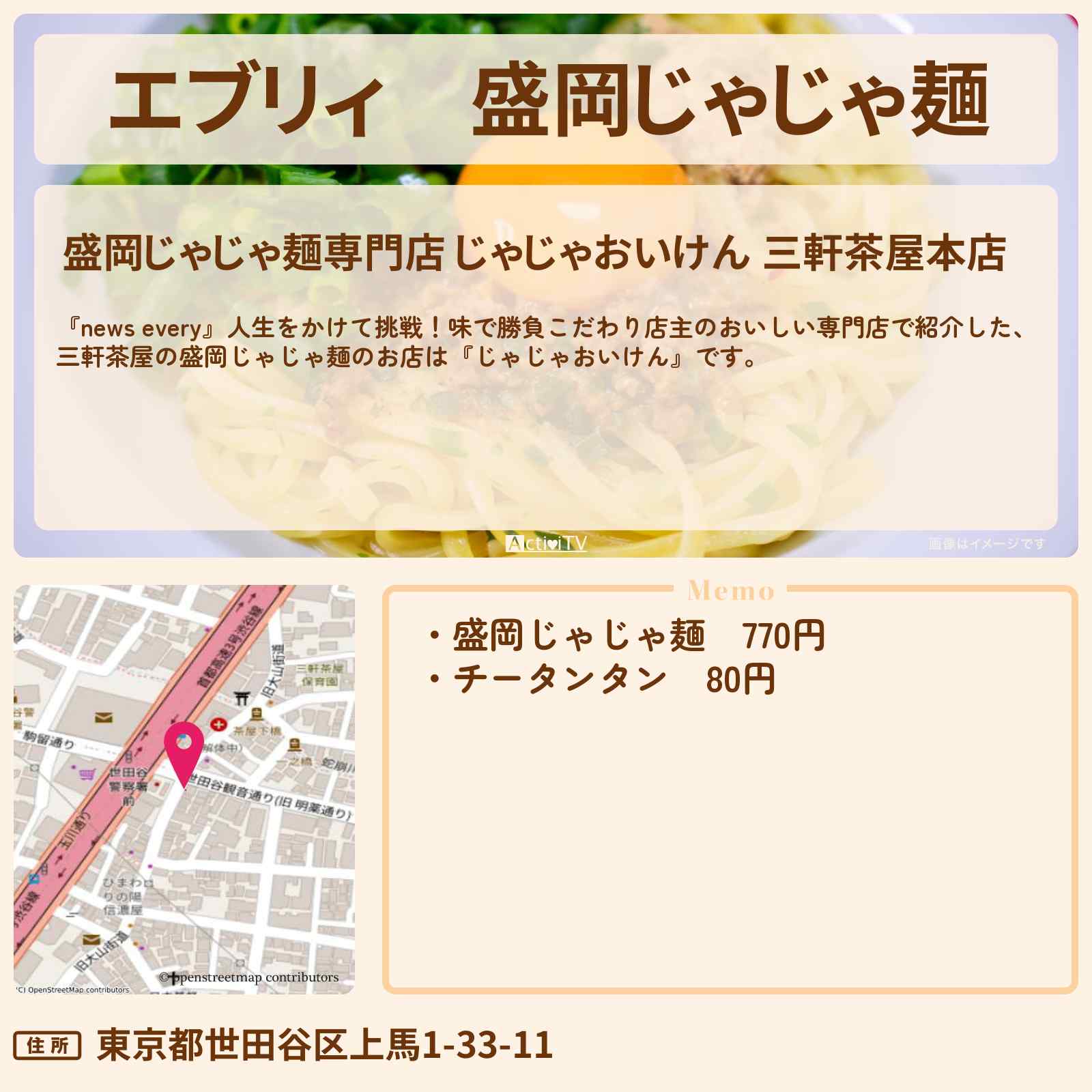 じゃじゃ麺 三軒茶屋駅「盛岡じゃじゃ麺専門店 じゃじゃおいけん 三軒茶屋本店」