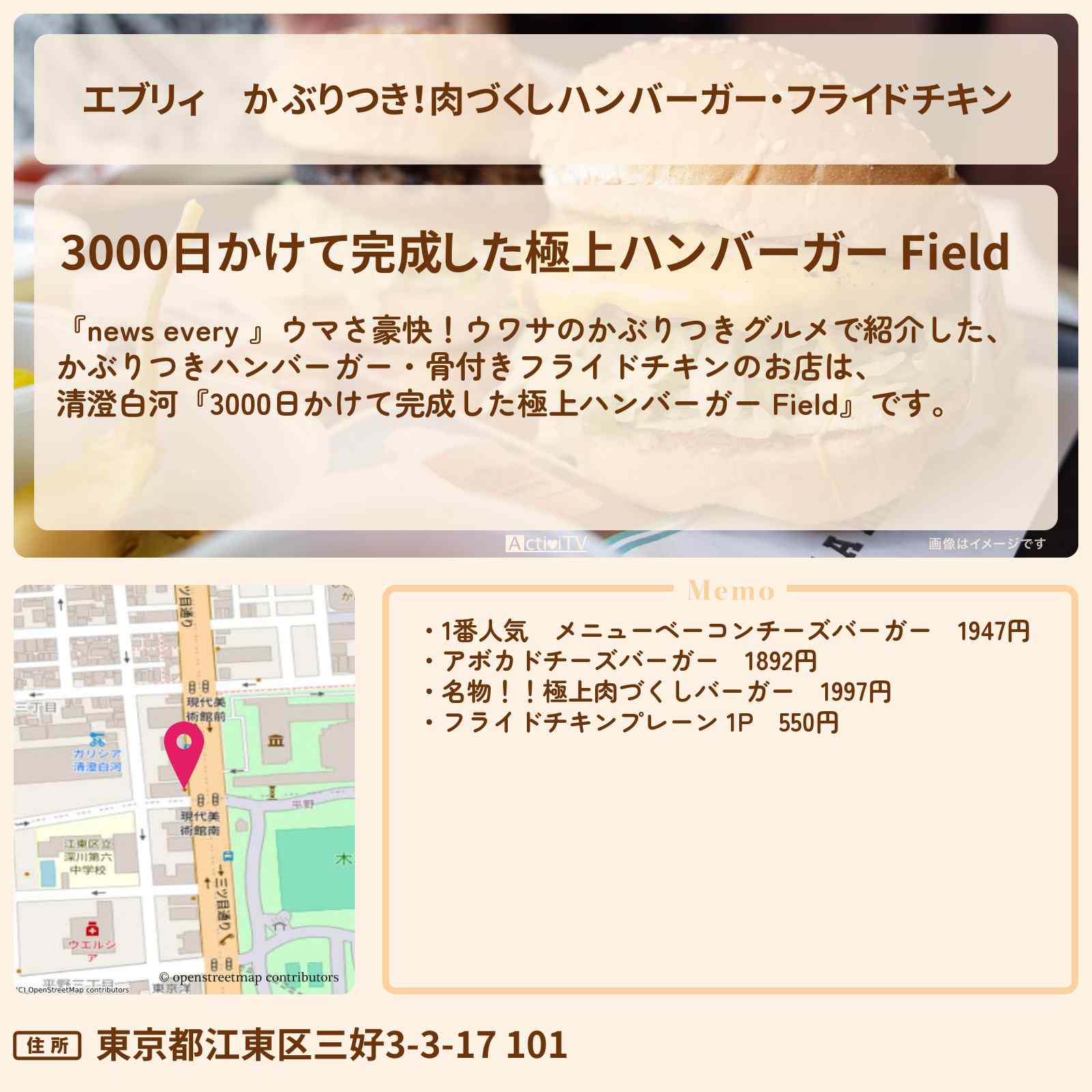 ハンバーガー・骨付きフライドチキン 清澄白河駅「3000日かけて完成した極上ハンバーガー Field」