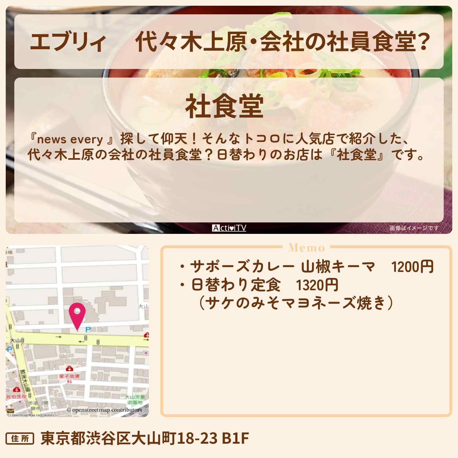 | 住所 | 東京都渋谷区大山町18-23 B1F |