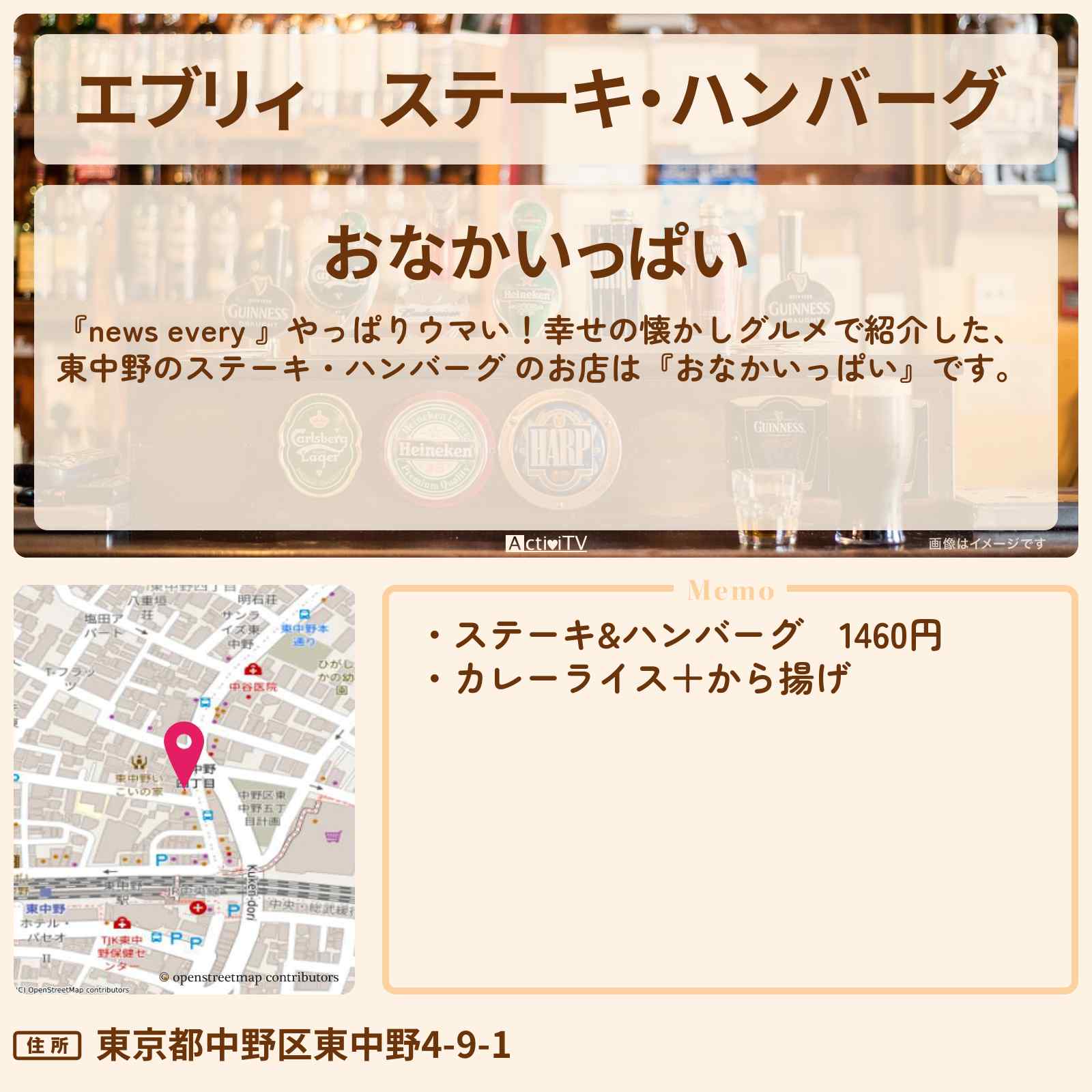 ステーキ・ハンバーグ 東中野駅「おなかいっぱい」
