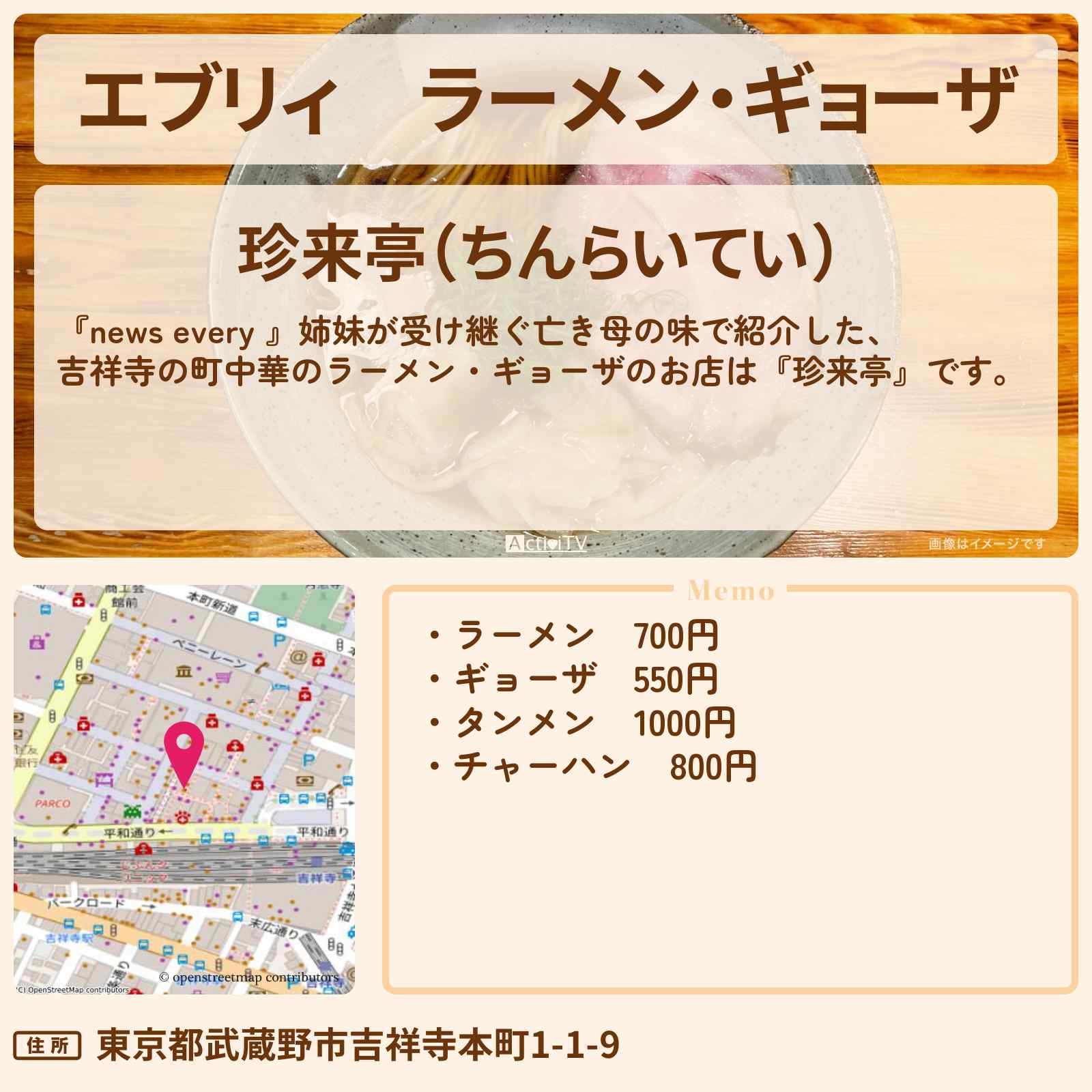 ラーメン・ギョーザ 吉祥寺駅「珍来亭(ちんらいてい)」