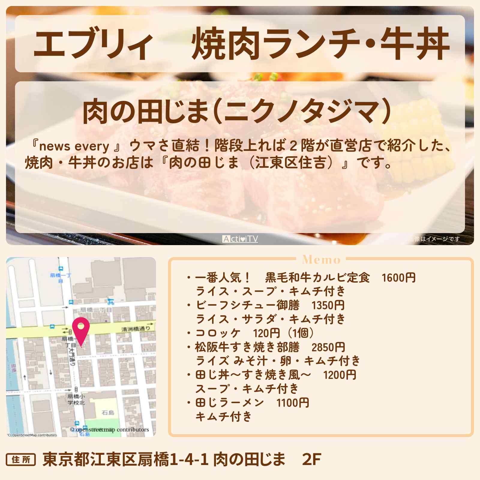 | 住所 | 東京都江東区扇橋1-4-1 肉の田じま 2F |
