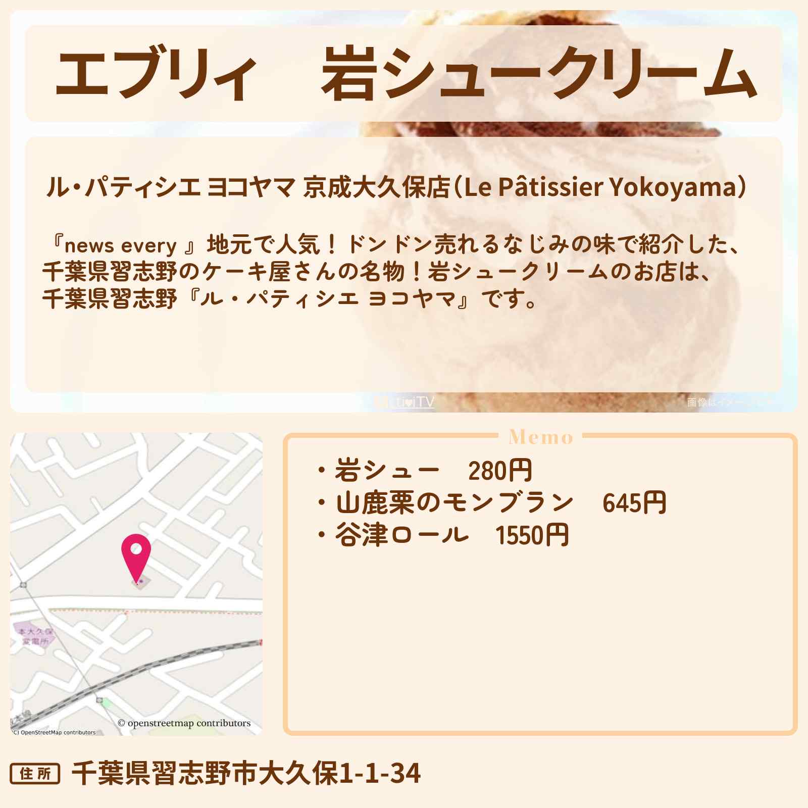 岩シュークリーム 京成大久保駅「ル・パティシエ ヨコヤマ 京成大久保店(Le Pâtissier Yokoyama)」