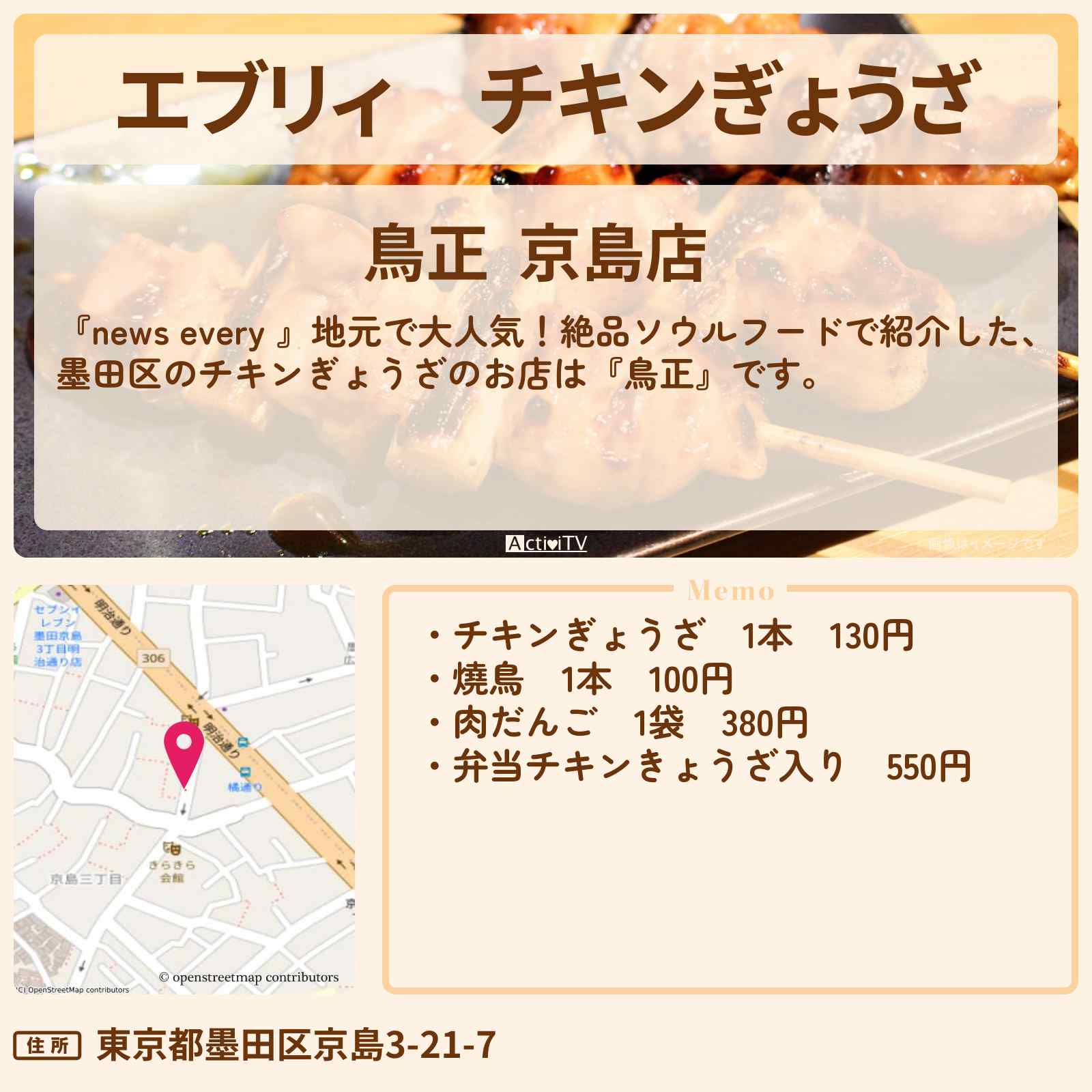 チキンぎょうざ 京成曳舟駅「鳥正 京島店」