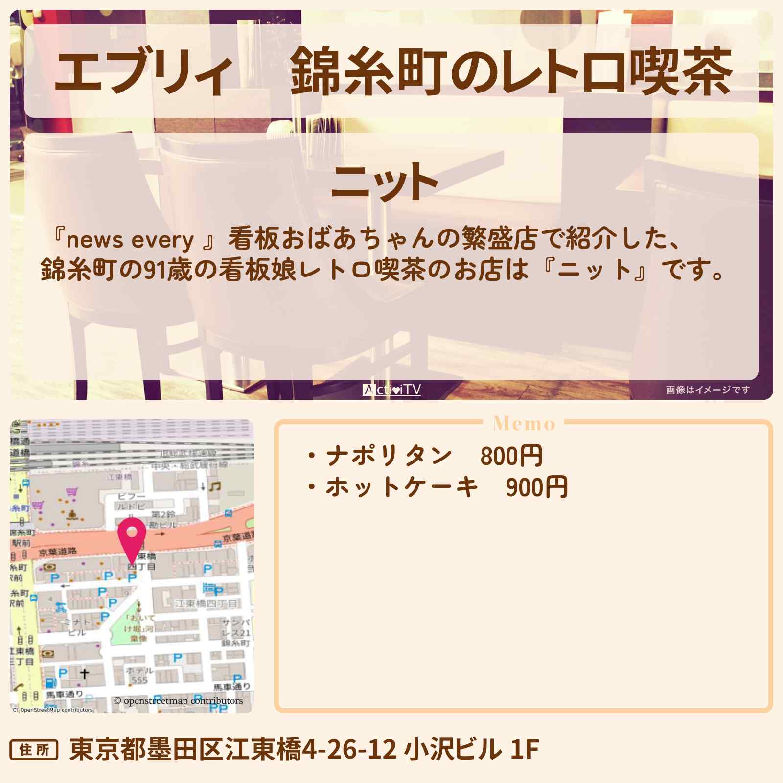 錦糸町のレトロ喫茶「ニット」