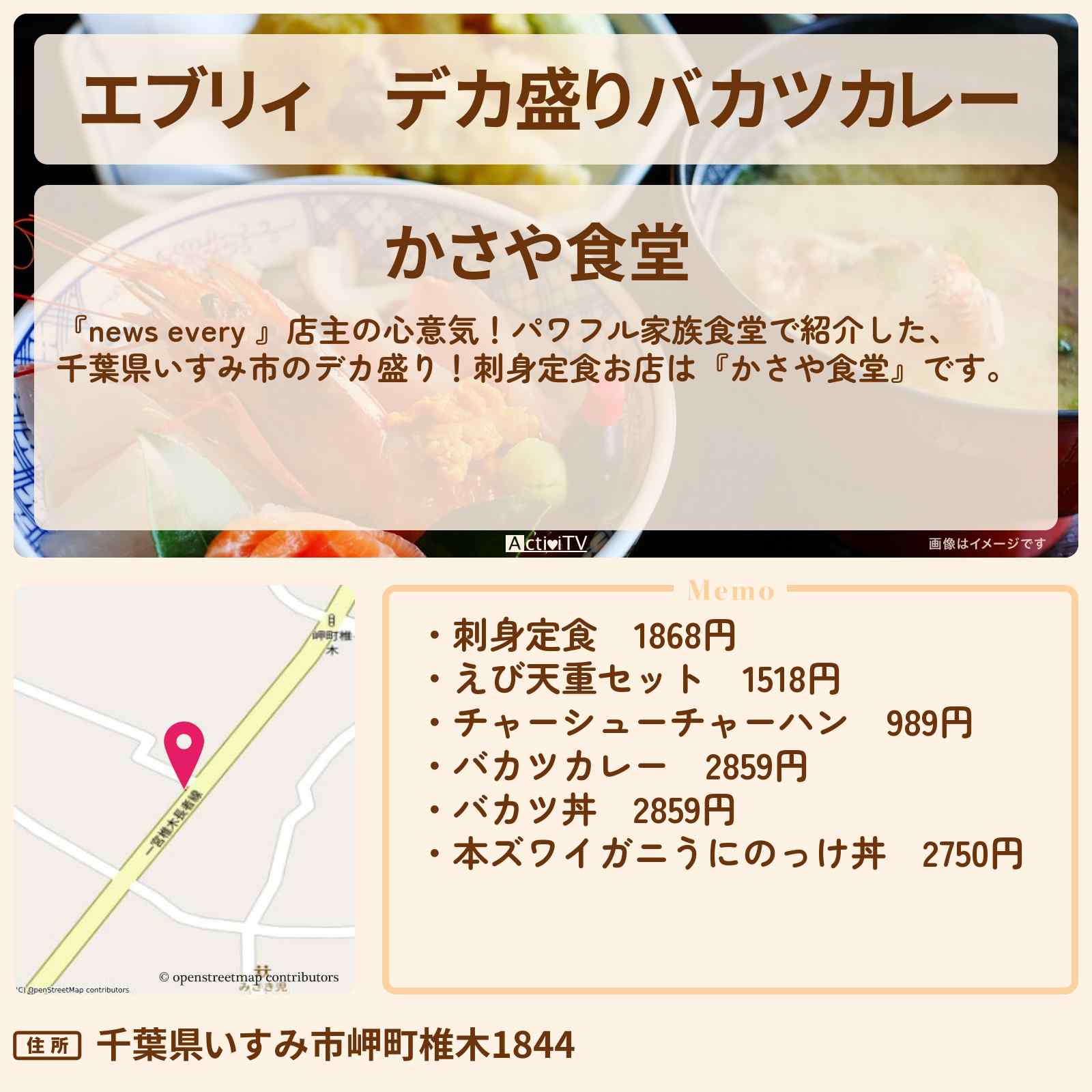 かさや食堂は、ボリューム満点の定食に加えて、地域の食材にこだわった料理が豊富。誰が来ても満足できる懐の広さを感じさせるお店です。観光でいすみを訪れた際にも、「太東駅」で下車してぜひ立ち寄りたいスポットです。総合的にみて、「大食いチャレンジでもOK」「子ども連れでも安心」のファミリー向け具合と、地域の美味しさを凝縮した味わいは、まさに“地域の宝箱”と言えるでしょう。