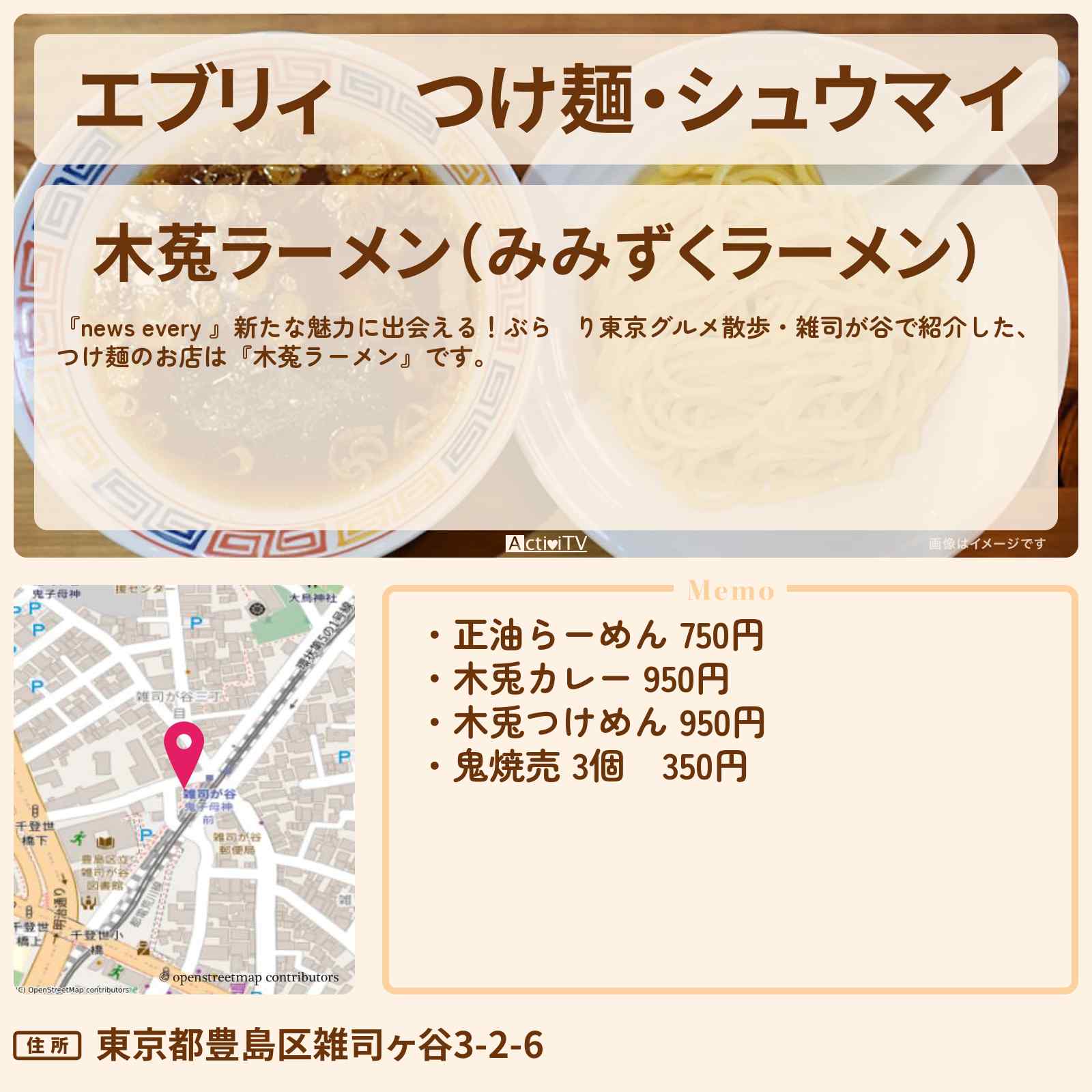 つけ麺鬼子母神前駅「木菟ラーメン(みみずくラーメン)」