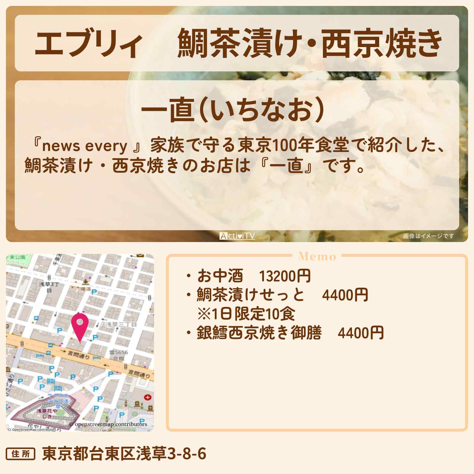 鯛茶漬け・西京焼き 浅草駅「一直(いちなお)」