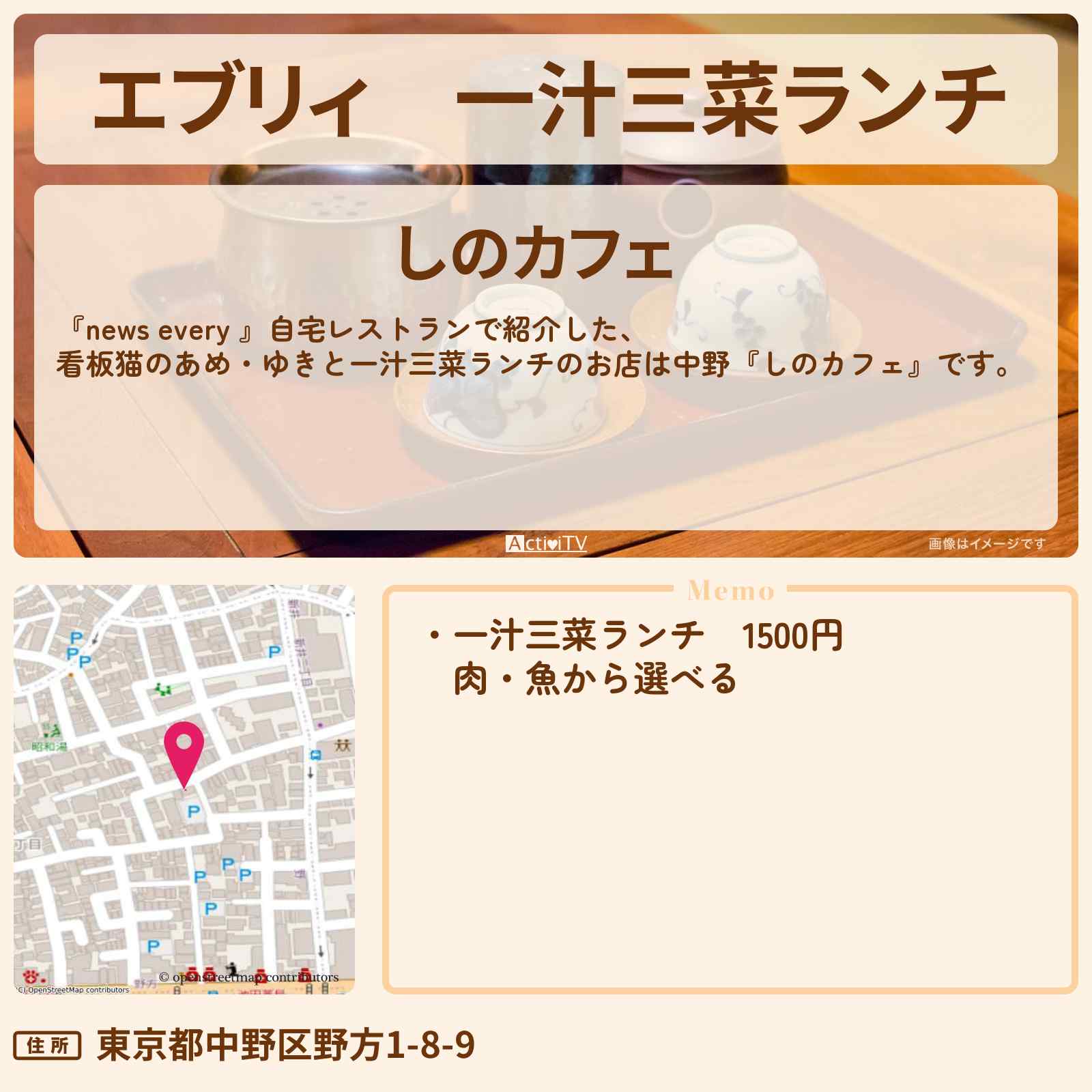 一汁三菜ランチ・辛味噌炒め 中野駅「しのカフェ」