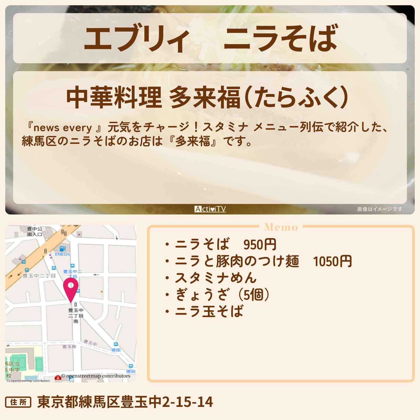 ニラそば 桜台駅「中華料理 多来福(たらふく)」