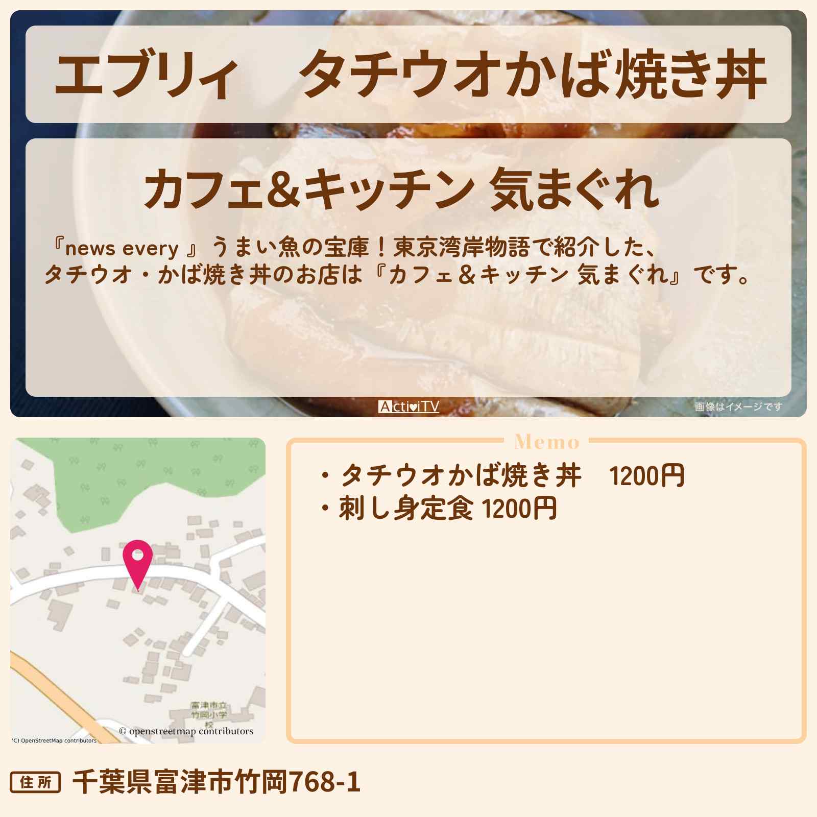 タチウオ・かば焼き丼 竹岡駅「カフェ&キッチン 気まぐれ」