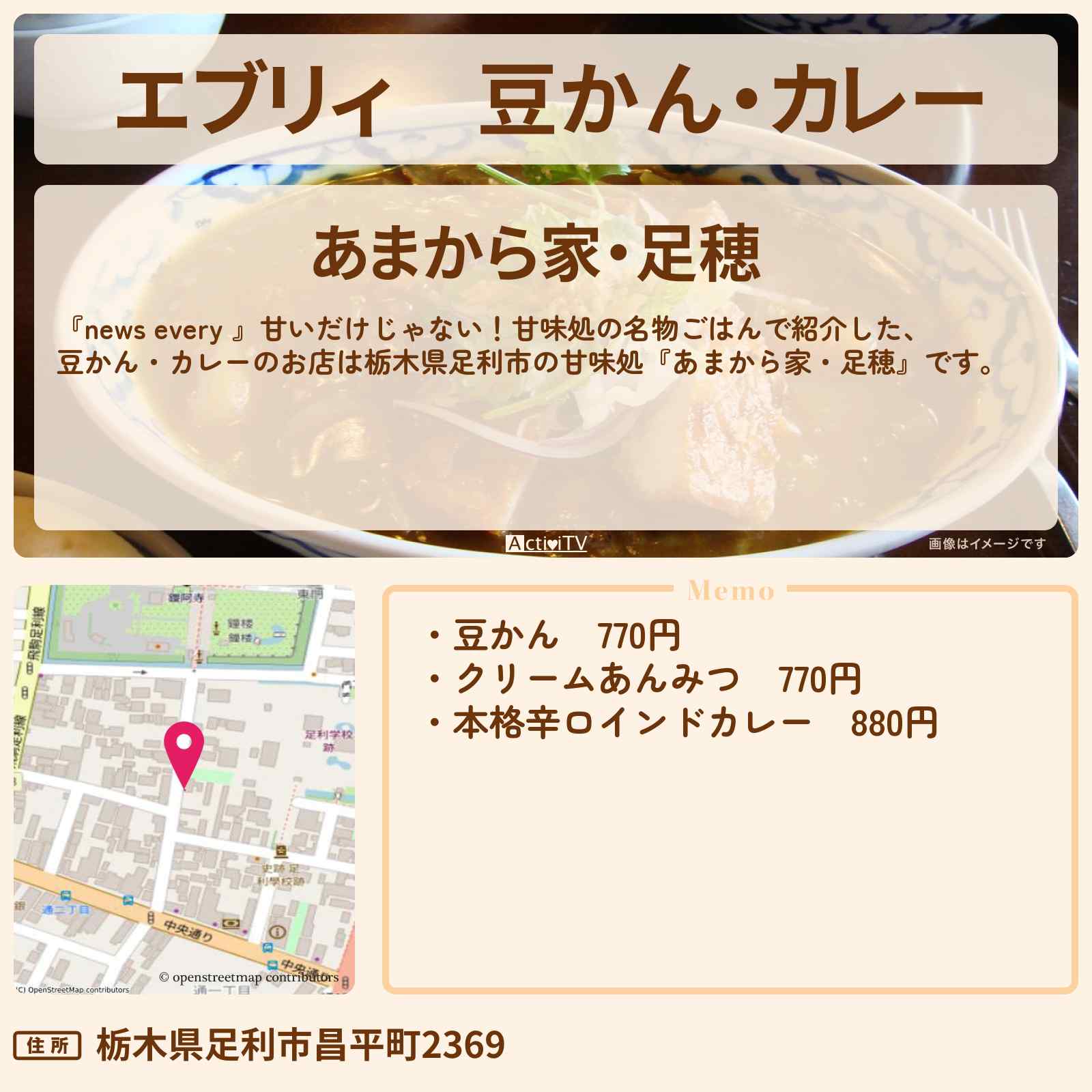 【エブリィ】豆かん・カレー『あまから家・足穂』栃木県足利市の甘味処のお店情報 #every